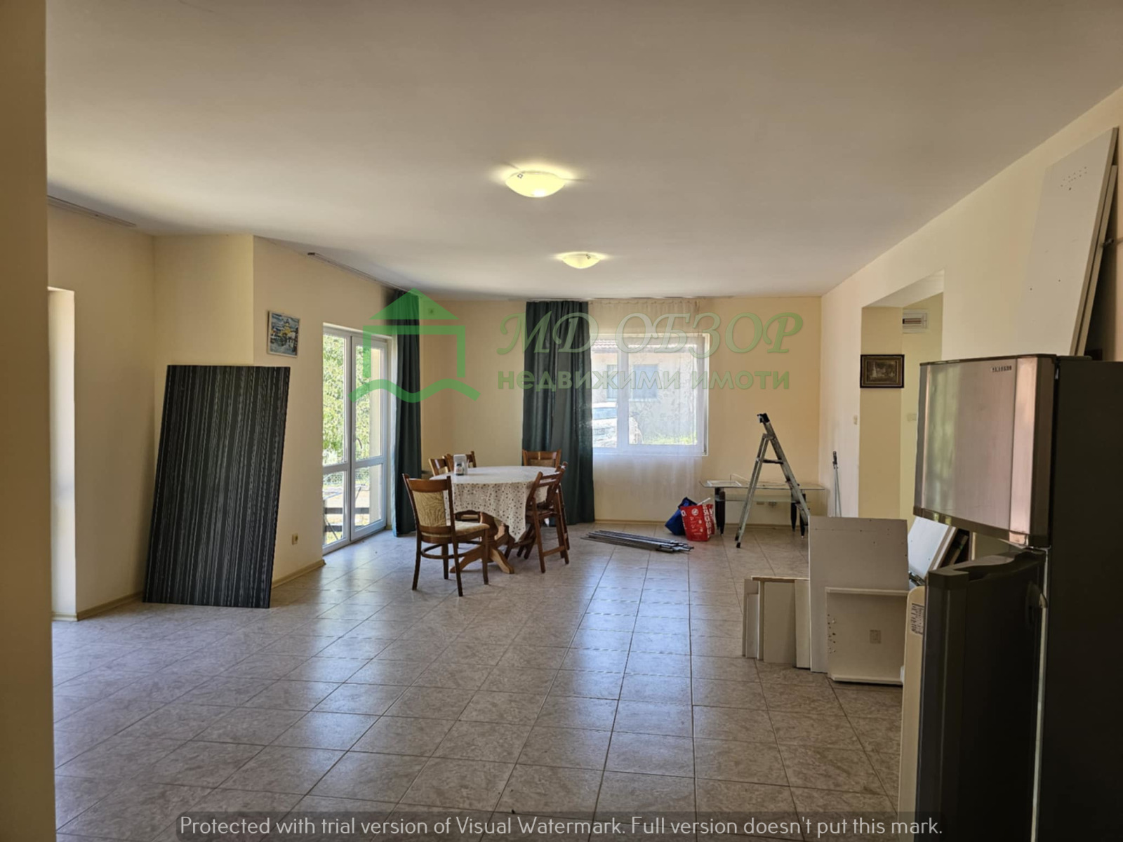 Къщата е със застроена площ от 122кв.м. със следното разпределение: дневна с кухня и трапезария, три спални, баня, тоалетна и открита панорамна тераса. Конструкцията на сградата е стоманобетон и тухли, покривът е дървена конструкция и керемиди, като таванът е окачен гипсокартон. ПВЦ дограма ; стени латекс; под ламиниран паркет и теракота; оборудвана баня с душ кабина. Монтиран СОТ. Сградата е изградена през 2010г. и има разрешение за ползване; самостоятелни партиди за ток и вода. В комплекса има на разположение открит басейн, ресторант и постоянна охрана. Ползването на басейна е по желание на собствениците.