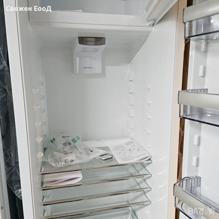 Хладилник без миризми с филтър CleanAir: Насладете се на свежо ухаещ хладилник благодарение на филтъра CleanAir. Нашият филтър съдържа въглерод, който неутрализира силните хранителни миризми и защитава естествения аромат на вашите съставки.