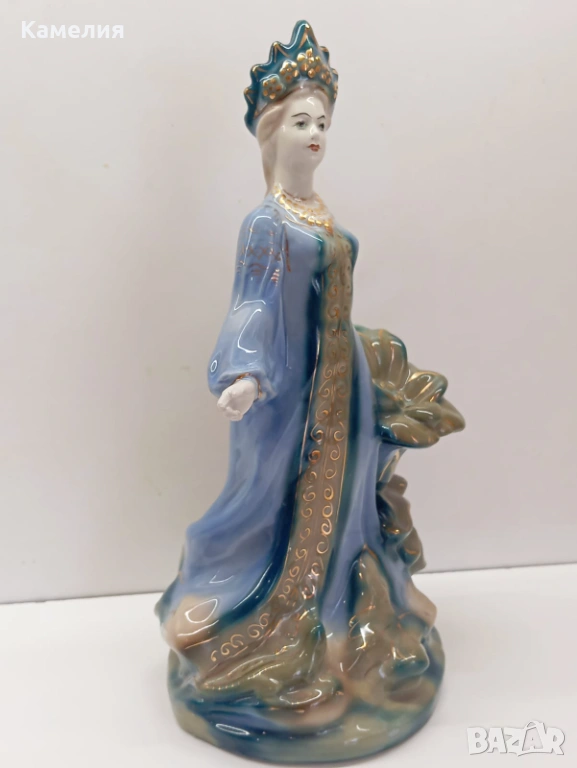 Руска порцеланова фигура Господарка на Медната планина, по приказки на Бажов, стара Гжел, 50-е години. Рядко оцветяване. Без забележки.