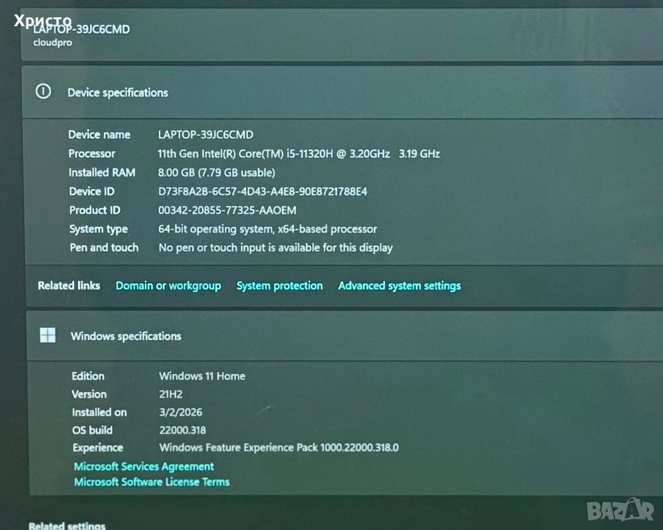 Процесор: Intel Core i5 (11-то поколение)