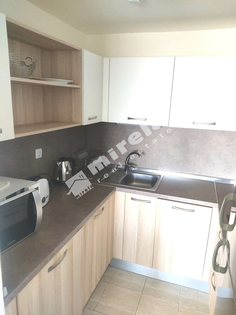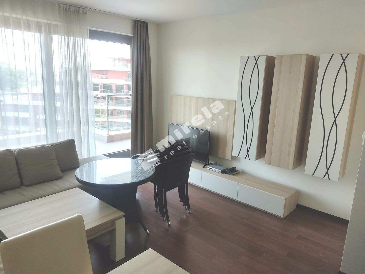 Далечна гледка към морето; Имотът има жилищен статут; Сградата има асансьор; Продава се с обзавеждане, което подлежи на уточнение; Има физическа охрана; ЕТАП НА СТРОИТЕЛСТВО: завършено строителство (Акт 15); ОТОПЛЕНИЕ: климатик; Има 1 балкон/тераса; Ремонтиран; Има такса поддръжка; Непреходен; Целогодишно ползване; ВИД СТРОИТЕЛСТВО: тухла; ПУСКОВ СРОК: 05.2012; ИЗЛОЖЕНИЕ: гледка към морето, гледка към басейна; СПАЛНИ: 2; БАНИ: 2; ДОГРАМА: PVC