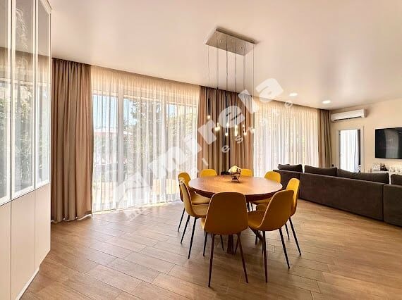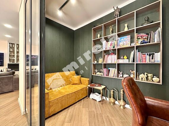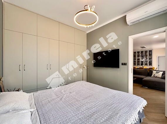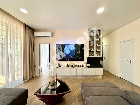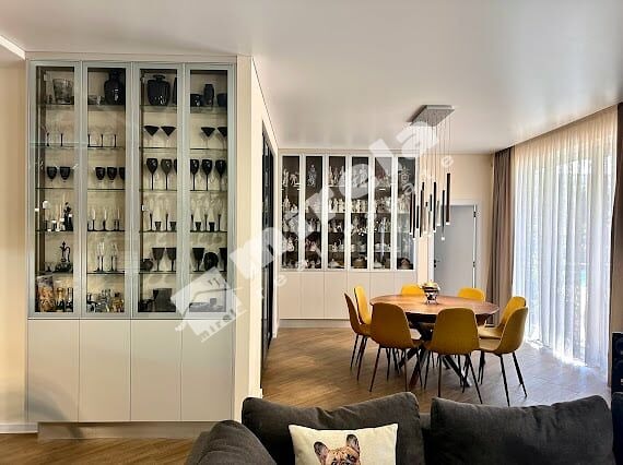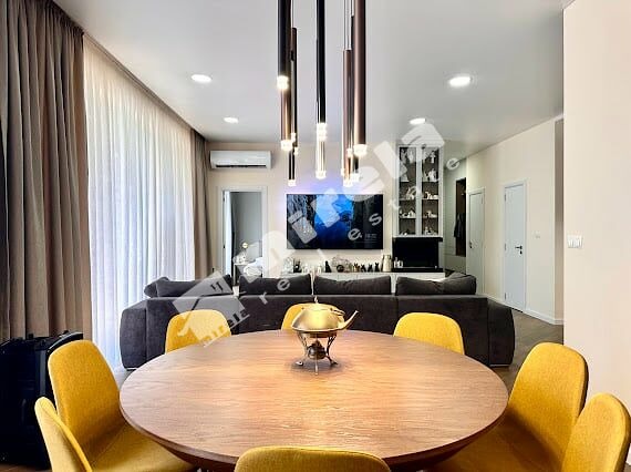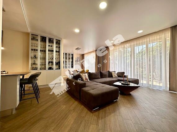 Апартаментът с площ от 123 кв. м се състои от: дневна с кухненска част, 2 спални, 2 бани и една тераса с гледка към комплекса. В площта на апартамента влиза и мазе.