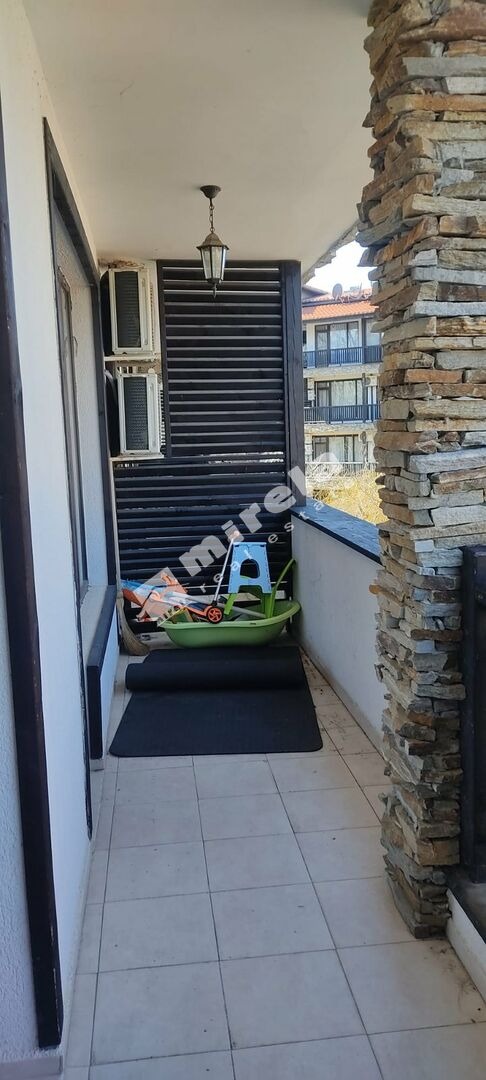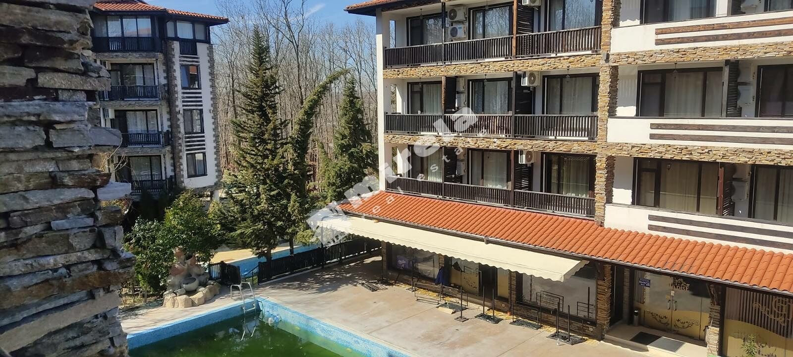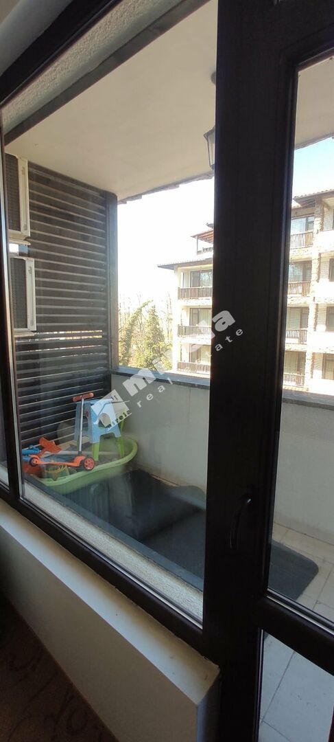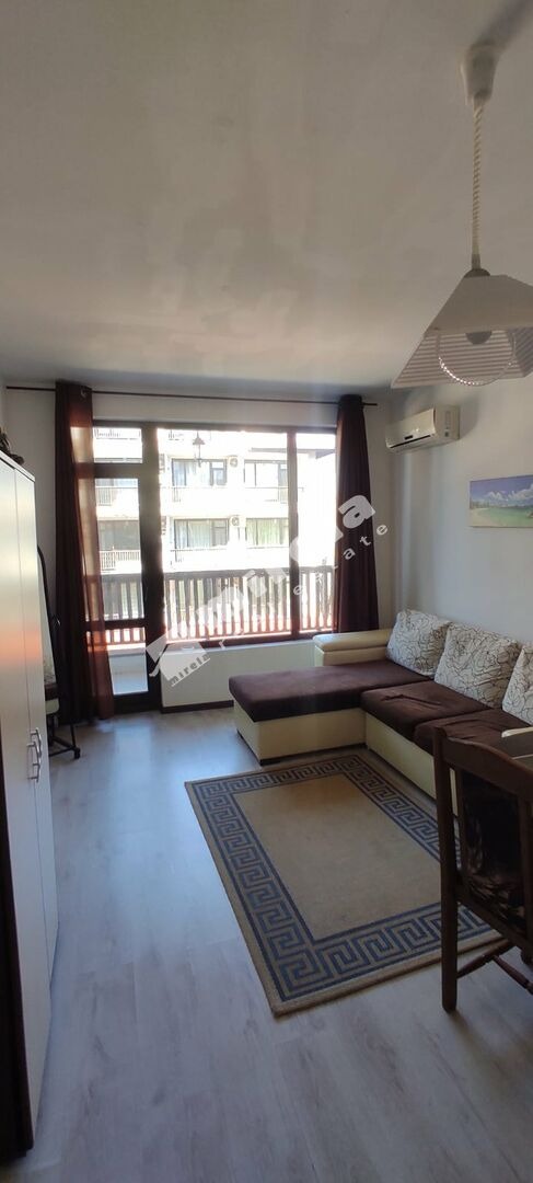 Имотът има жилищен статут; Сградата има асансьор; Продава се с обзавеждане, което подлежи на уточнение; Има физическа охрана; ЕТАП НА СТРОИТЕЛСТВО: разрешение за ползване (Акт 16); ОТОПЛЕНИЕ: климатик; Има 1 балкон/тераса; Ремонтиран; Има такса поддръжка; Непреходен; Целогодишно ползване; ВИД СТРОИТЕЛСТВО: тухла; ЗАСТРОЕНА ПЛОЩ 52 кв.м; ГОДИНА НА СТРОИТЕЛСТВО: 2010 г.; ИЗЛОЖЕНИЕ: север, гледка към басейна; СПАЛНИ: 1; БАНИ: 1; ДОГРАМА: PVC