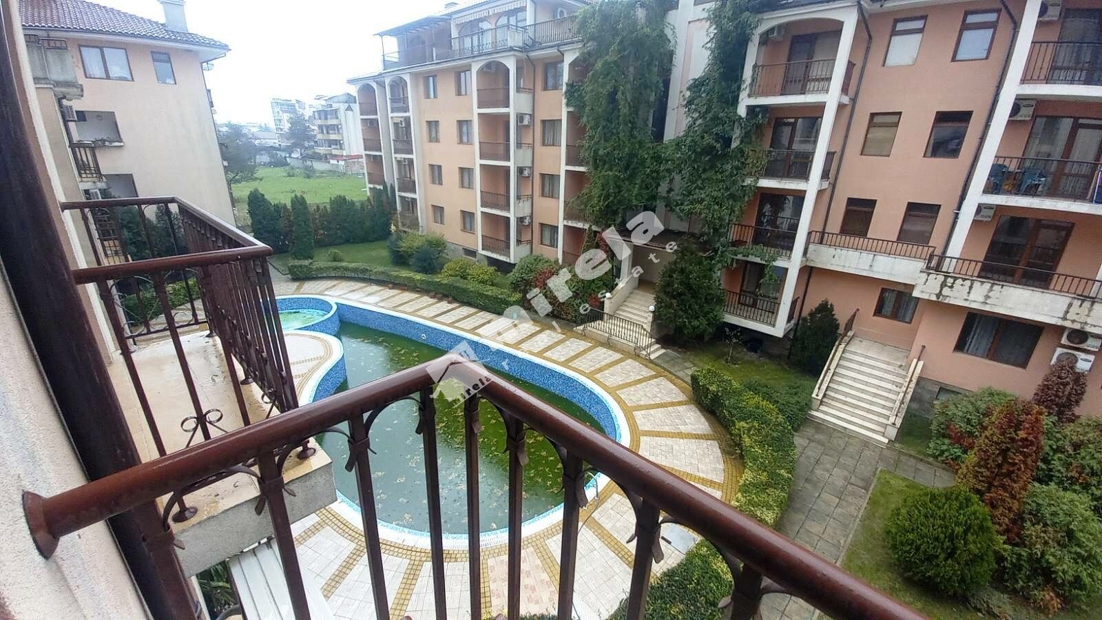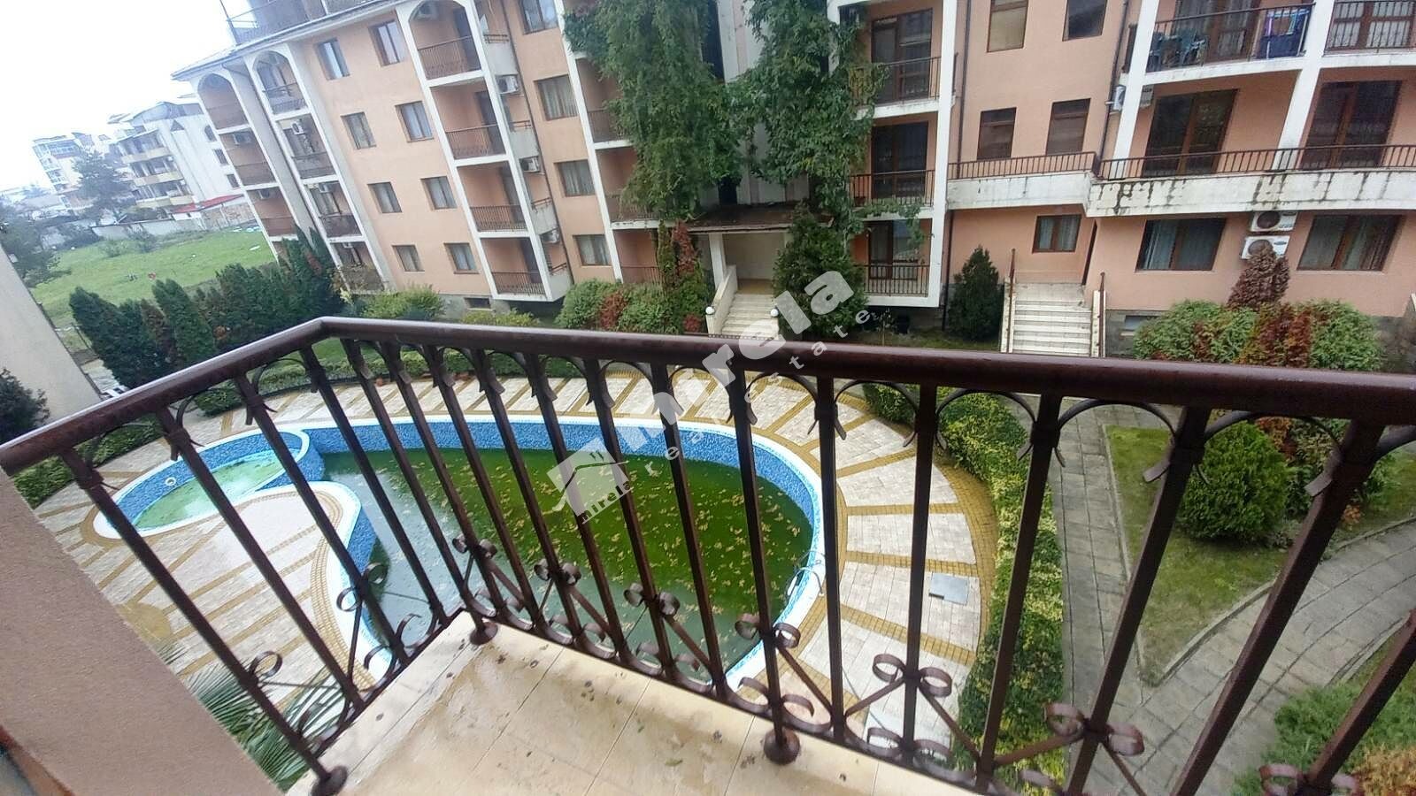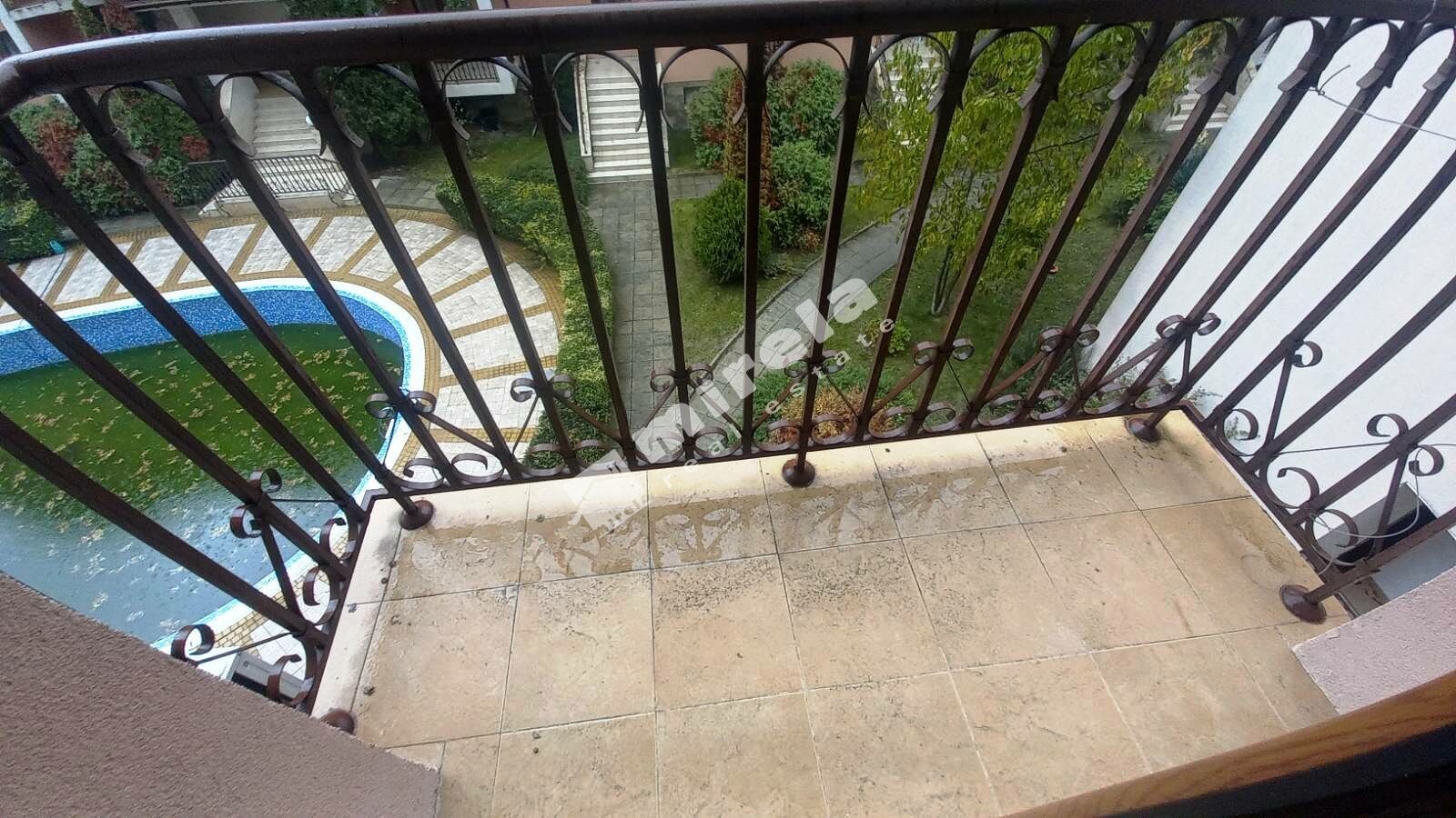 Далечна гледка към морето; Имотът има жилищен статут; Сградата има асансьор; Продава се с обзавеждане, което подлежи на уточнение; ЕТАП НА СТРОИТЕЛСТВО: разрешение за ползване (Акт 16); ОТОПЛЕНИЕ: климатик; Има 3 или повече балкона/тераси; Ремонтиран; Има такса поддръжка; Особен преход; Целогодишно ползване; ВИД СТРОИТЕЛСТВО: тухла; ЗАСТРОЕНА ПЛОЩ 96 кв.м; ГОДИНА НА СТРОИТЕЛСТВО: 2000 г.; ИЗЛОЖЕНИЕ: север, юг, гледка към морето, гледка към басейна, гледка към гората, гледка към озеленен двор, панорамна гледка; СПАЛНИ: 2; БАНИ: 1; ДОГРАМА: PVC