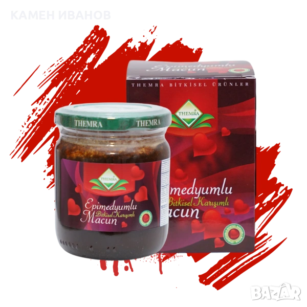 Епимедиум маджун. Производител: “ Themra“, Турция. Стъклено бурканче от 240 грама. Срок на годност: Декември 2030. Приемът на ЕПИМЕДИУМ МЕД/Маджун води до: