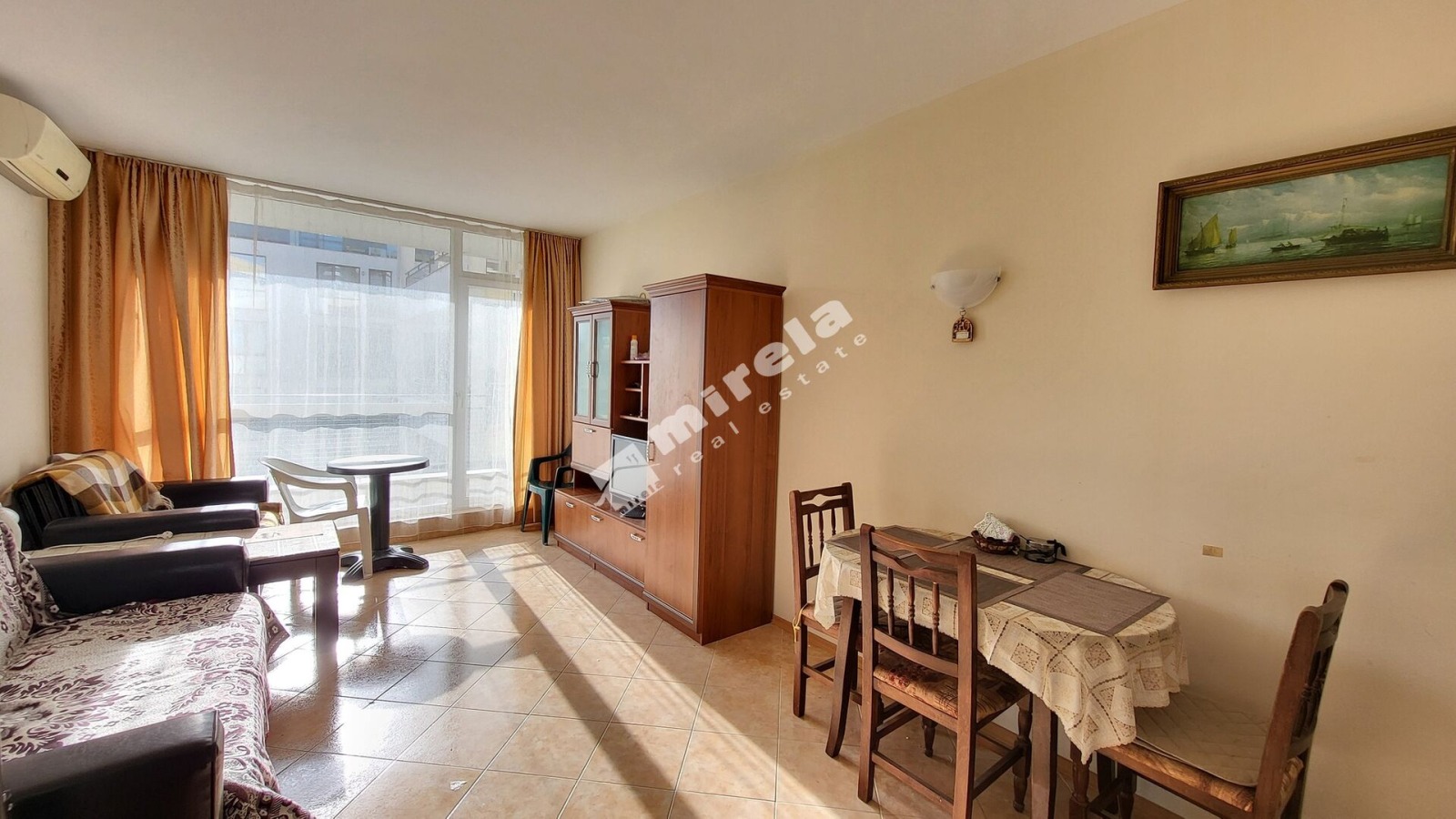 Имотът има жилищен статут; Има надземно паркомясто; Сградата има асансьор; Продава се с обзавеждане, което подлежи на уточнение; Има физическа охрана; ЕТАП НА СТРОИТЕЛСТВО: разрешение за ползване (Акт 16); ОТОПЛЕНИЕ: ел. нагреватели/климатик; Има 1 балкон/тераса; Ремонтиран; Има такса поддръжка; Непреходен; Целогодишно ползване; ВИД СТРОИТЕЛСТВО: тухла; ГОДИНА НА СТРОИТЕЛСТВО: 2010 г.; ИЗЛОЖЕНИЕ: гледка към морето; СПАЛНИ: 1; БАНИ: 1; ДОГРАМА: PVC