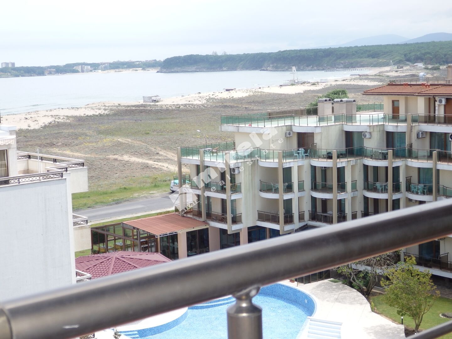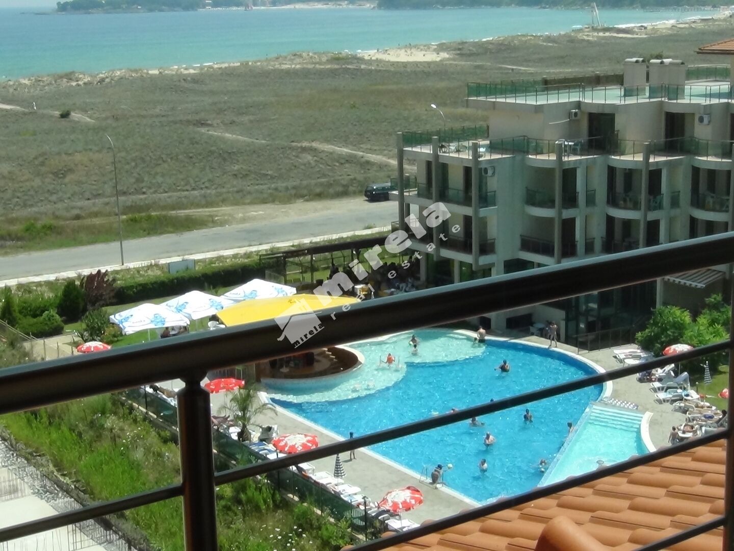 Първа линия с гледка море; Имотът има жилищен статут; Сградата има асансьор; Продава се с обзавеждане, което подлежи на уточнение; Има физическа охрана; ЕТАП НА СТРОИТЕЛСТВО: разрешение за ползване (Акт 16); ОТОПЛЕНИЕ: климатик; Има 2 балкона/тераси; Ремонтиран; Има такса поддръжка; Особен преход; Целогодишно ползване; ВИД СТРОИТЕЛСТВО: стоманобетонна конструкция с тухлена зидария; ГОДИНА НА СТРОИТЕЛСТВО: 2000 г.; ИЗЛОЖЕНИЕ: изток, запад, гледка към морето, гледка към басейна, гледка към озеленен двор, панорамна гледка, морска панорама; СПАЛНИ: 1; БАНИ: 1; ДОГРАМА: Пет камерна PVC