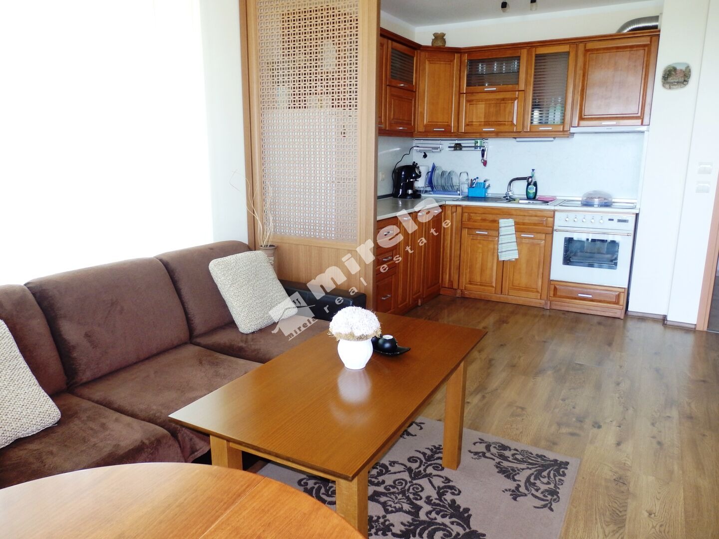 Апартаментът се състои от дневна, обединена с кухненски бокс, спалня, две тераси и санитарен възел.
