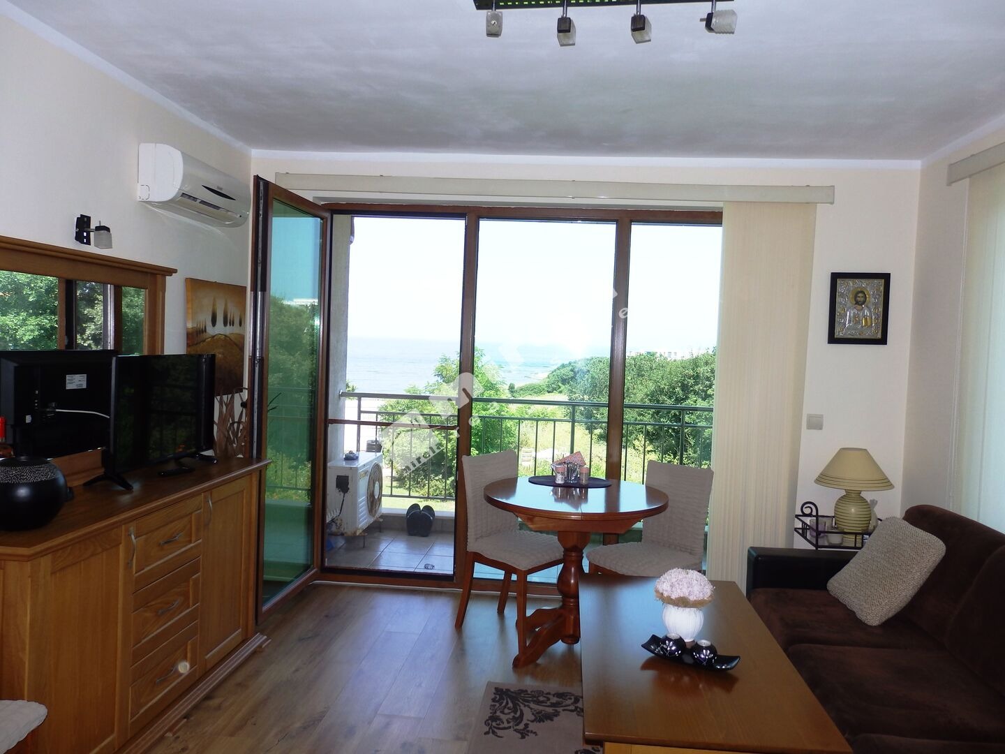 Първа линия с гледка море; Имотът има жилищен статут; Сградата няма асансьор; Продава се с обзавеждане, което подлежи на уточнение; Има физическа охрана; ЕТАП НА СТРОИТЕЛСТВО: разрешение за ползване (Акт 16); ОТОПЛЕНИЕ: климатик; Има 1 балкон/тераса; Ремонтиран; Има такса поддръжка; Непреходен; Целогодишно ползване; ВИД СТРОИТЕЛСТВО: тухла; ЗАСТРОЕНА ПЛОЩ 70 кв.м; ГОДИНА НА СТРОИТЕЛСТВО: 2000 г.; ИЗЛОЖЕНИЕ: югоизток, югозапад, гледка към морето; СПАЛНИ: 1; БАНИ: 1; ДОГРАМА: PVC