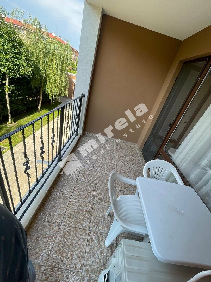 Първа линия без гледка море; Имотът е със статут 'студио'; Има надземно паркомясто; Сградата няма асансьор; Продава се с обзавеждане, което подлежи на уточнение; Има физическа охрана; ЕТАП НА СТРОИТЕЛСТВО: разрешение за ползване (Акт 16); ОТОПЛЕНИЕ: ел. нагреватели/климатик; Има 1 балкон/тераса; Ремонтиран; Има такса поддръжка; Преходен; Целогодишно ползване; ВИД СТРОИТЕЛСТВО: тухла; ГОДИНА НА СТРОИТЕЛСТВО: 2010 г.; ИЗЛОЖЕНИЕ: гледка към озеленен двор; СПАЛНИ: 1; БАНИ: 1; ДОГРАМА: PVC