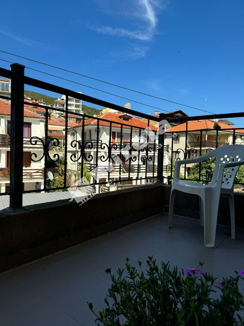 Далечна гледка към морето; Имотът има жилищен статут; Сградата няма асансьор; Продава се с обзавеждане, което подлежи на уточнение; Има физическа охрана; ЕТАП НА СТРОИТЕЛСТВО: разрешение за ползване (Акт 16); ОТОПЛЕНИЕ: климатик; Има 1 балкон/тераса; Ремонтиран; Има такса поддръжка; Непреходен; Целогодишно ползване; ВИД СТРОИТЕЛСТВО: тухла; ЗАСТРОЕНА ПЛОЩ 63 кв.м; ГОДИНА НА СТРОИТЕЛСТВО: 2000 г.; ИЗЛОЖЕНИЕ: изток; СПАЛНИ: 1; БАНИ: 1; ДОГРАМА: PVC