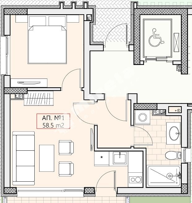ЕТАП НА СТРОИТЕЛСТВО: кота 4-ти етаж; ОТОПЛЕНИЕ: климатик; Има 1 балкон/тераса; Ремонтиран; Без такса поддръжка; Преходен; Целогодишно ползване; ВИД СТРОИТЕЛСТВО: тухла; ПУСКОВ СРОК: 12.2026; ИЗЛОЖЕНИЕ: юг; СПАЛНИ: 1; БАНИ: 1; ДОГРАМА: Алуминиева - лукс