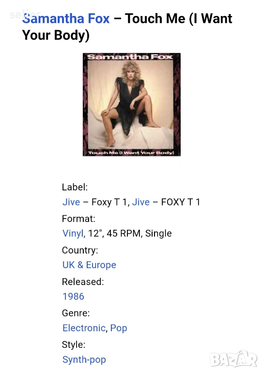 Samantha Fox ‎– Touch Me (I Want Your Body) Maxi Single 12 Издание 🇬🇧 UK 1986г Състояние на винила, снимка 1 - Грамофонни плочи - 53675183 Samantha Fox ‎– Touch Me (I Want Your Body) Maxi Single 12 Издание 🇬🇧 UK 1986г Състояние на винила, снимка 2 - Грамофонни плочи - 53675183 1/2