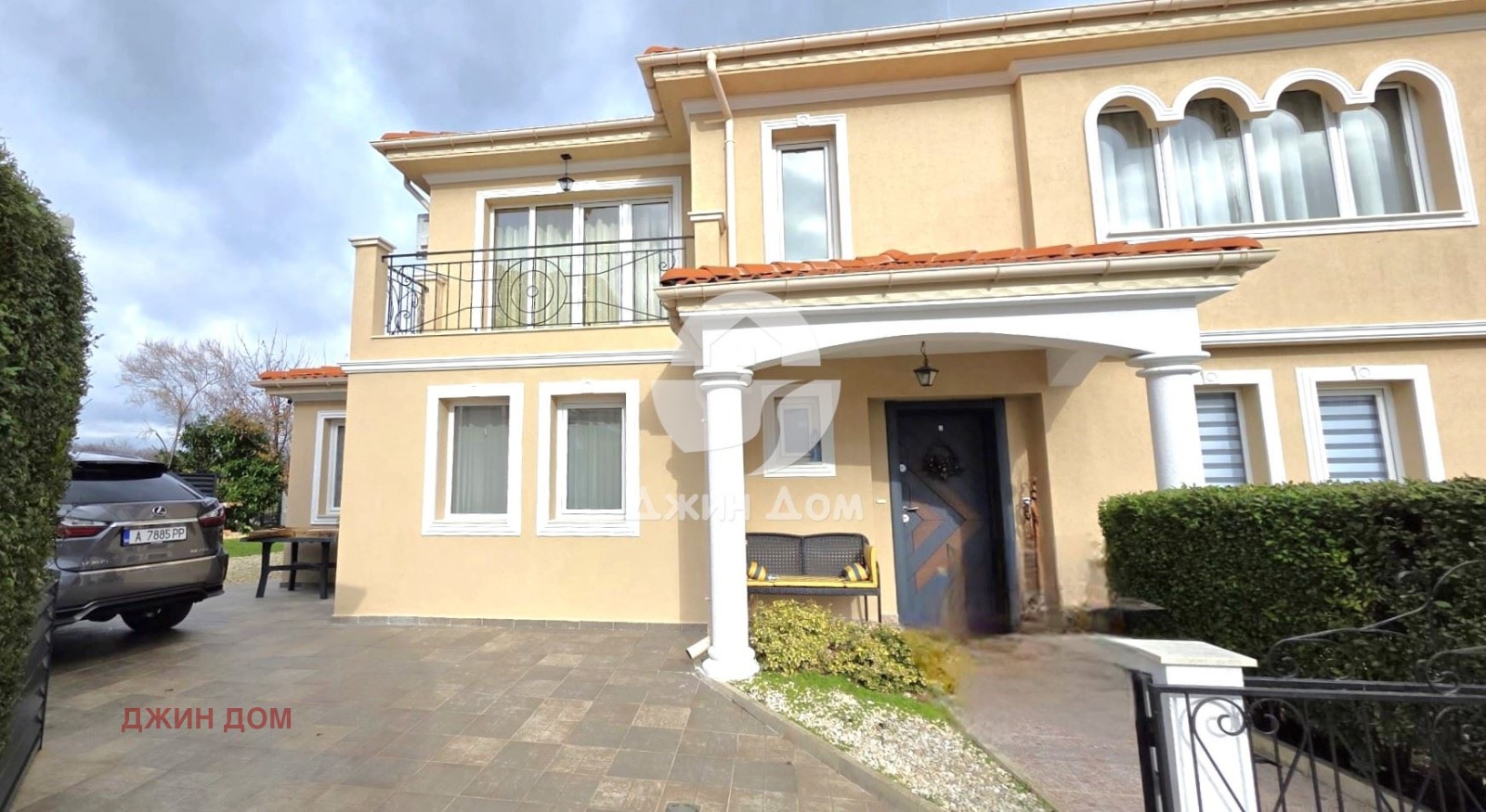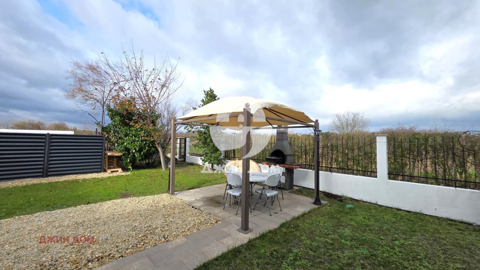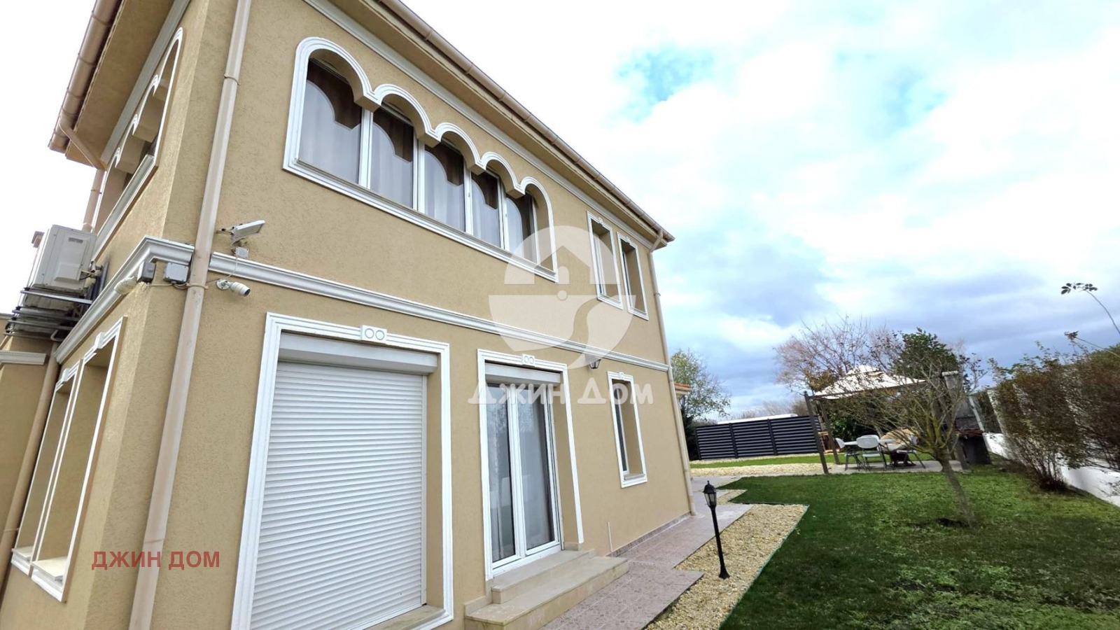 Къщата разполага с озеленен и поддържан двор от 500 кв. м, в който е изградена стопанска постройка и са обособени паркоместа.