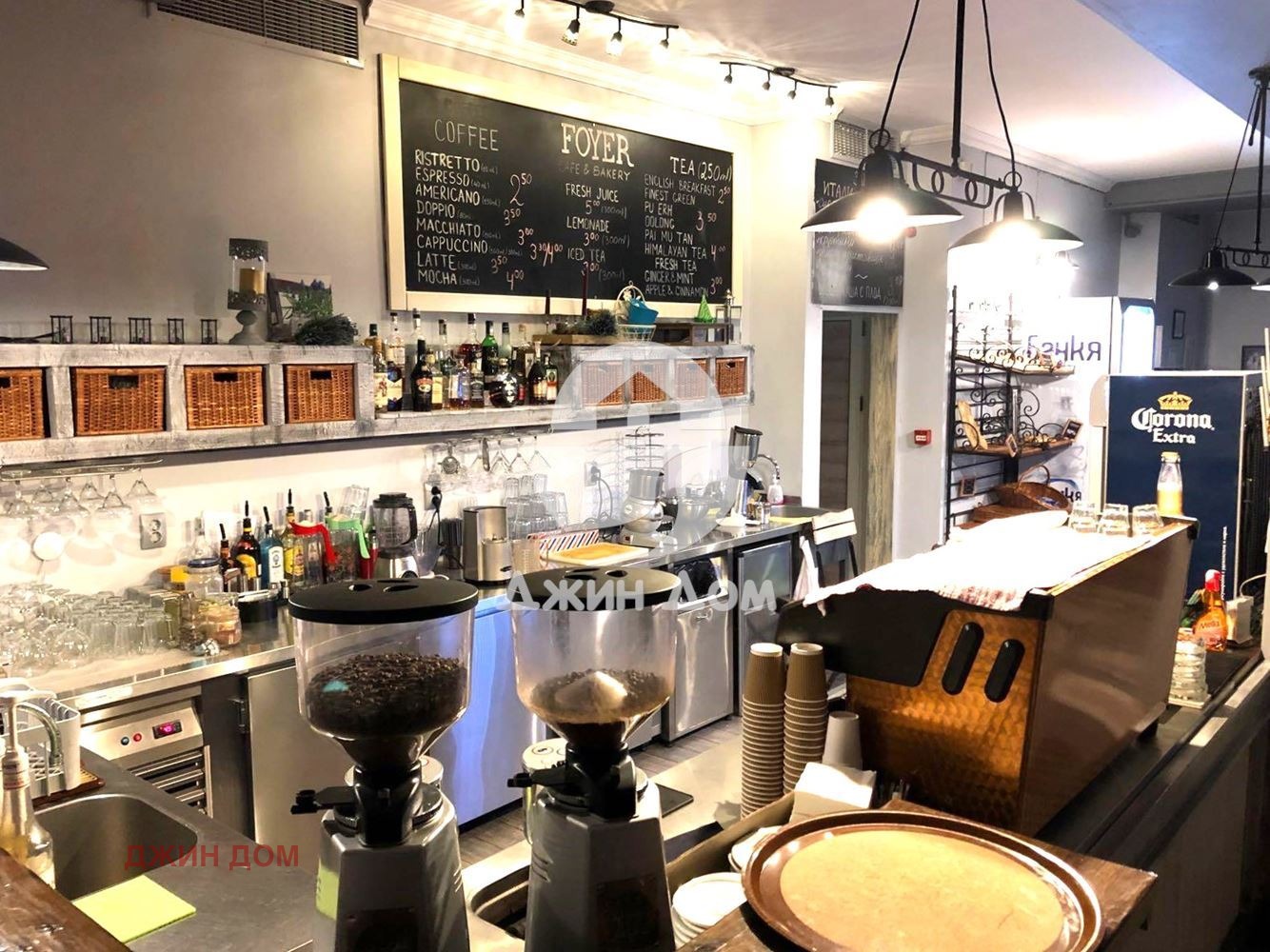 Залата за клиенти разполага с: бар оборудван с висококачествена кафе машина (производство Италия), хладилници;