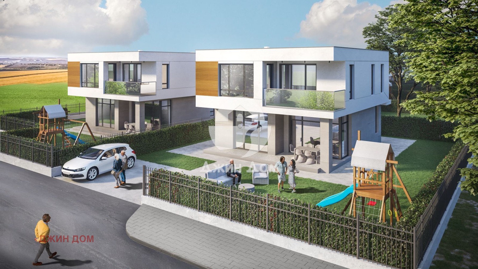 Цена в строителство: 265 000 евро (360 кв.м двор), 275 000 евро (550 кв.м двор);