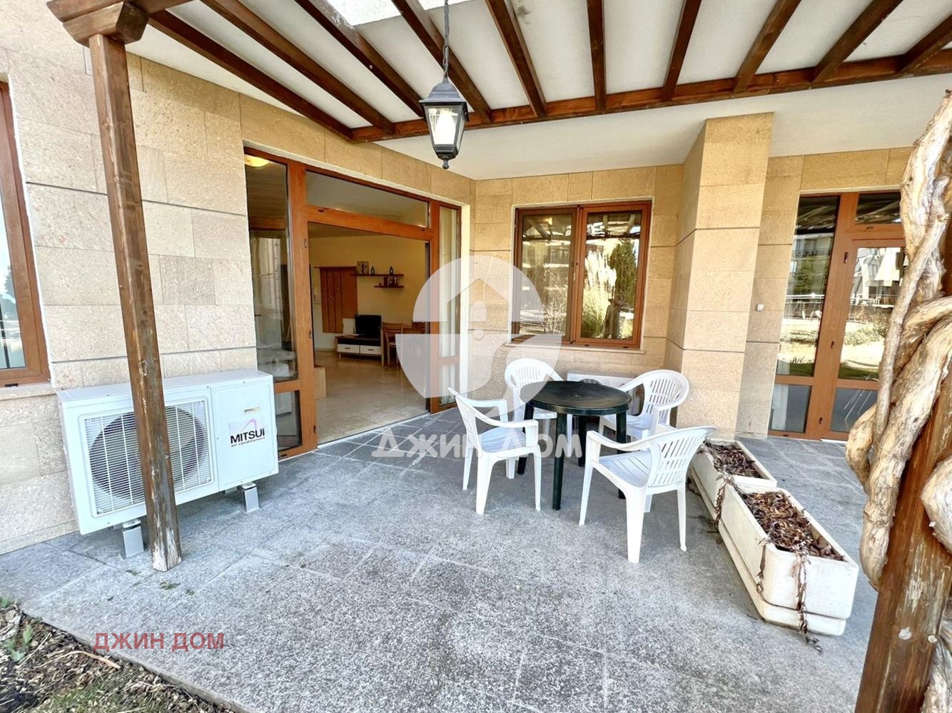 Жилището е с площ 100 кв.м и се намира на партерен етаж.