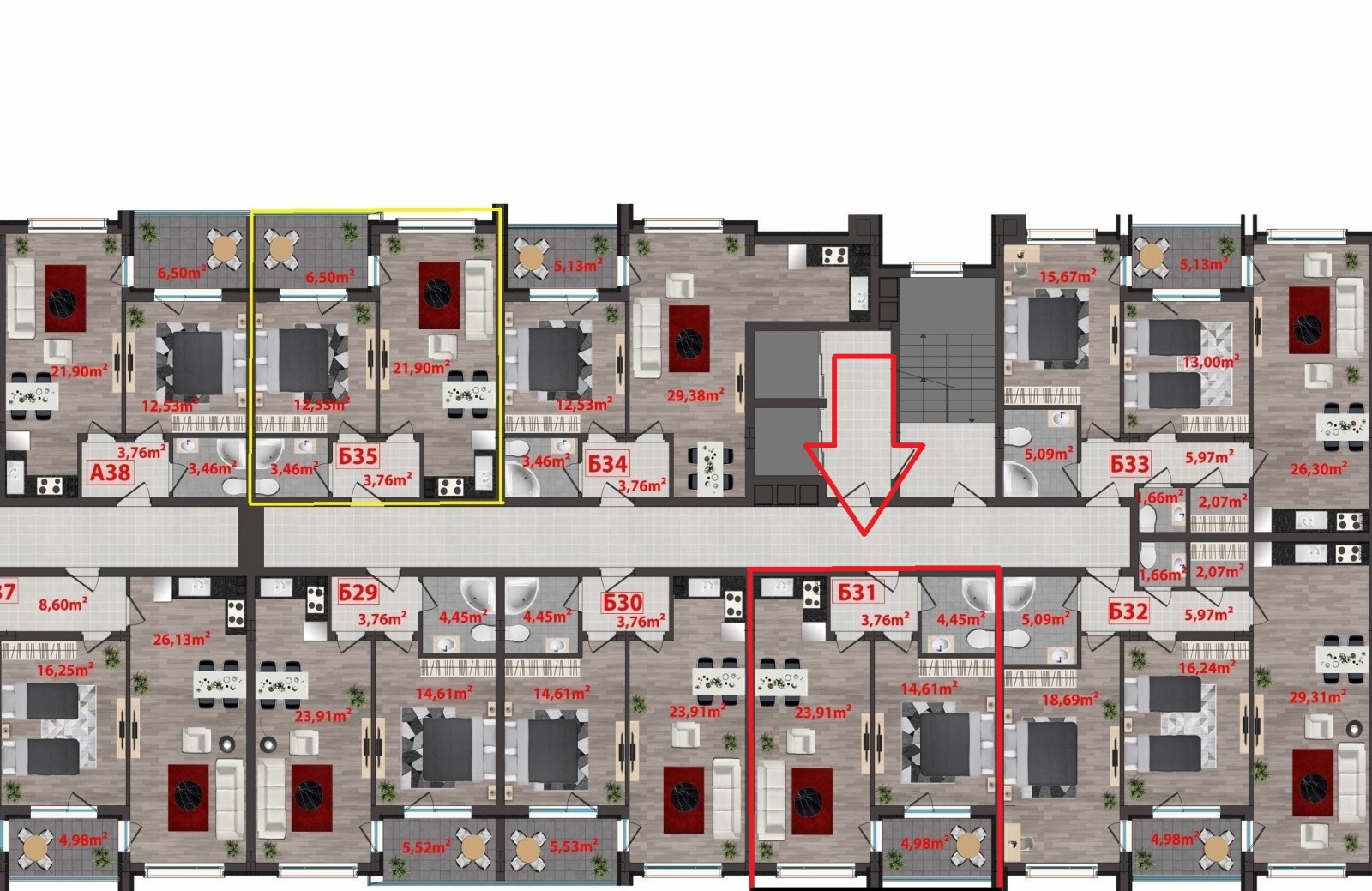 2-стайни апартаменти с площ около 58,44 130,25 кв.м.