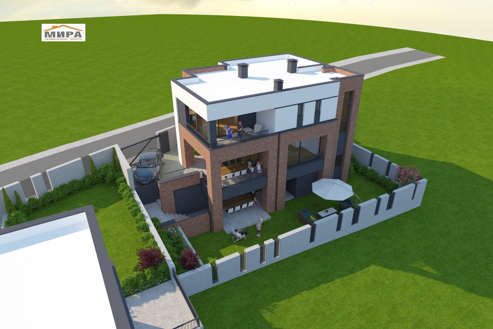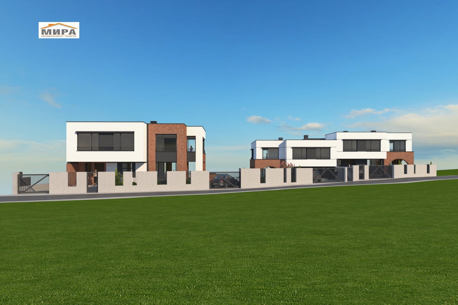Къщите са на три нива и се отличават със съвременна архитектура, просторни помещения и много светлина.
