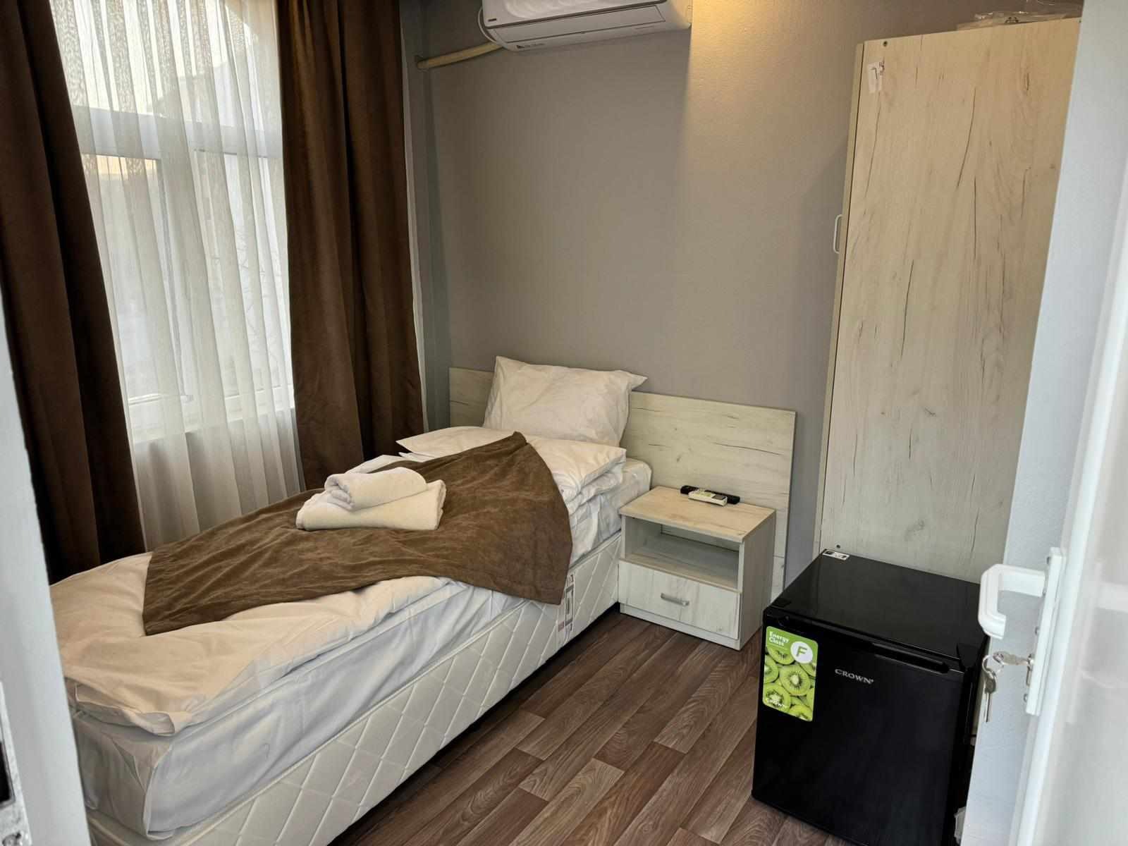 Имаме удоволствието да предложим на Вашето внимание разработен хотел в центъра на гр. Харманли с парцел 91 кв.м. и разгъната застроена площ - 450кв.м, които се разпределят на един подземен етаж, три надземни етажа и мансарден етаж. Имота има следното разпределение: на подземния етаж има изградена механа и кухня, на партерния етаж са разположени рецепция и ресторант, на първи етаж: три двойни стаи, на втори и трети етаж по четири двойни стаи. Всяка стая разполага със самостоятелен санитарен възел, климатик, хладилник и кабелна телевизия. Пред хотела има предвидени паркоместа. Отоплението/ охлаждането е с климатици. Продава се с наличното обзавеждане и оборудване! Мястото е много комуникативно.