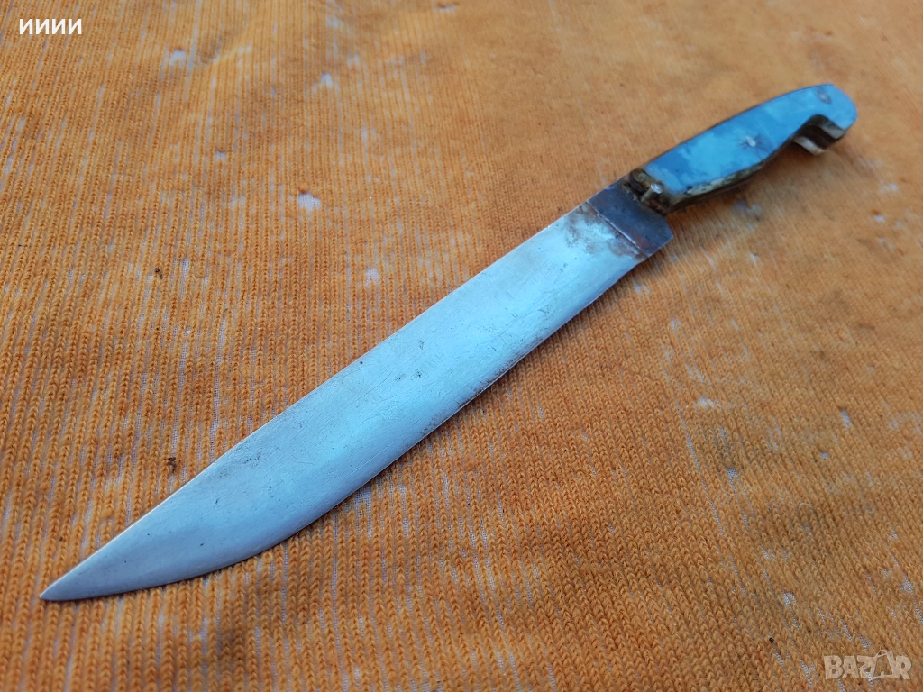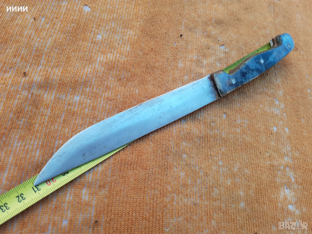 Изработен през соца, от неръждаема стомана, с дебелина на острието 3 мм. Дръжката от единия край има около един сантиметър отчупване, но няма луфт и е удобна по ръката.