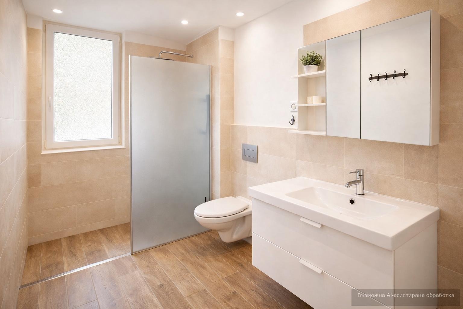 Имотът е с вътрешна изолация, 5-камерна дограма с троен стъклопакет, поддържан вход с контролиран достъп и паркинг. Готов за нанасяне. Всяка стая разполага със спалня и диван с функция сън за гости , телевизор и климатик. Кухненският бокс е оборудван с всички електроуреди, включително съдомиялна, пералня и сушилня. Банята е с подово отопление.