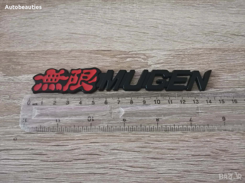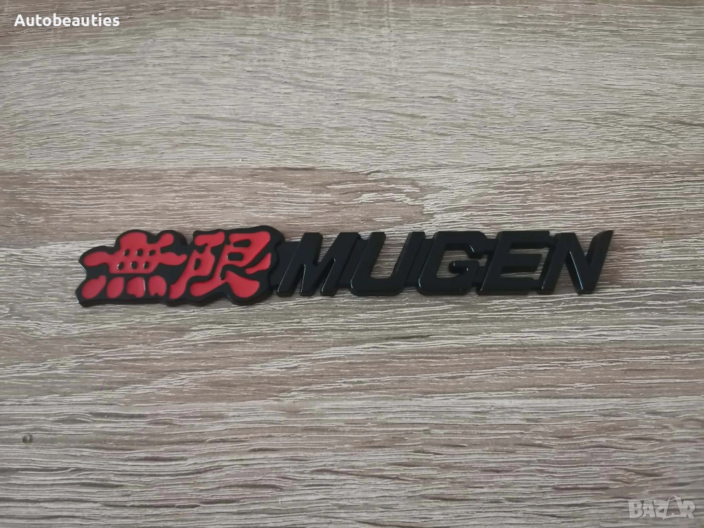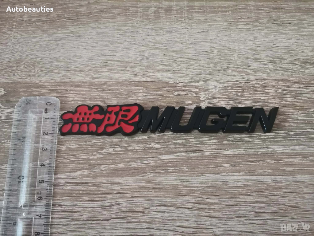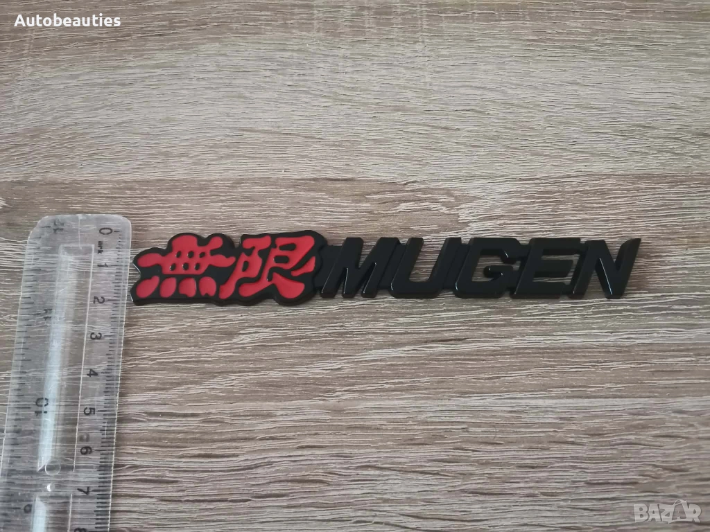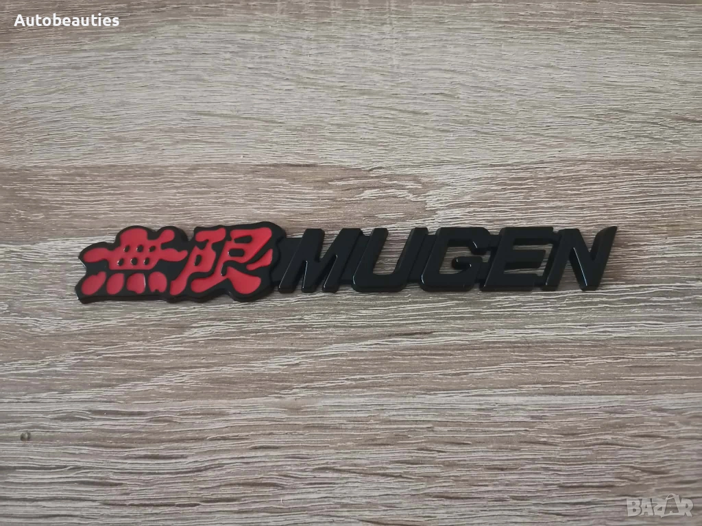 нова емблема Mugen за всички модели на Honda в черен цвят. Размерите са дадени на снимките.