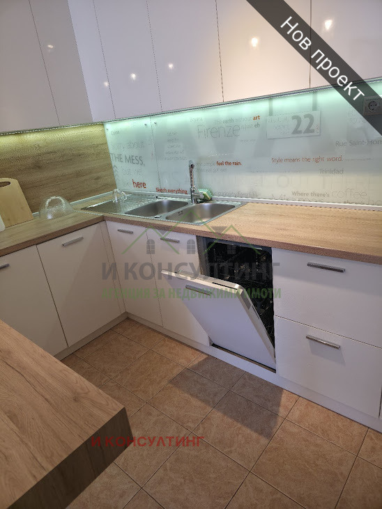 Агенция 'И Консултинг' дава под наем Тристаен апартамент в Люлин 10 в близост до 95 ДГ 'Омайниче', както и спирки на градски транспорт, автобуси и тролей, хранителни магазини, облагородени междублокови пространства и кътчета за почивка. Жилището е в нов блок на 6-ти етаж от 7 с площ от 105 кв.м. Разпределението е: коридор с вграден гардероб, кухня с трапезария и хол с балкон към него, 2 спални (една от които ще се обзаведе по желание на бъдещия наемател) с балкон към нея, баня с тоалетна, отделно тоалетна. Жилището е напълно обзаведено с нови мебели. Отоплението е на Климатик в хола и Конвектори във спалните. Топлата вода е от Бойлер.