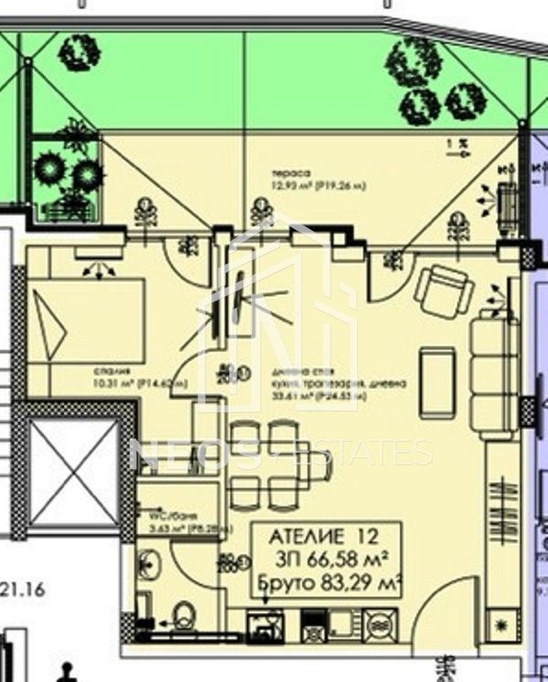 Представяме за продажба просторно жилище с една спалня, с обща площ 83.29 кв.м. Имотът е на четвърти етаж, с гледка към морето, в нова сграда, подходяща за целогодишно живеене. Състои се от всекидневна с кухненски бокс, спалня, обща тераса, баня/тоалетна, склад. Жилището ще се издава завършено 'на тапа'. В строителството се влагат материали от най-високо качество! Сградата има превъзходна локация - само на метри от плажа и центъра на гр.Созопол. В непосредствена близост има аптеки, лекарски кабинет, банкови офиси, хранителен магазин и др.