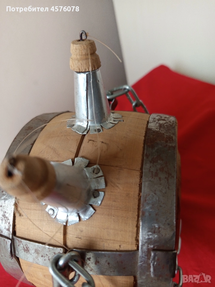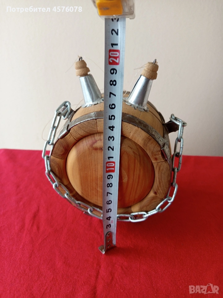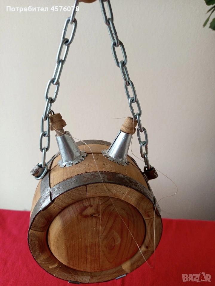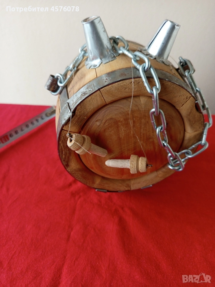 неизползвано българско павурче / бъклица/ от масивно дърво с два чучура и метална верига за окачване. размери на снимките. не е използвано, но вероятно може да се задуе и използва по предназначение.