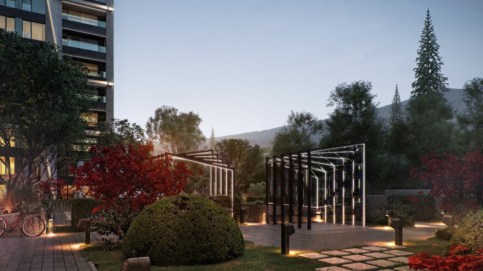 Комплексът предлага: 8 000 кв.м частен парк, детски площадки, спортно игрище и открит фитнес, алея за джогинг,ресторант, зони за отдих с фонтани и богато озеленяване, контрол на достъпа.