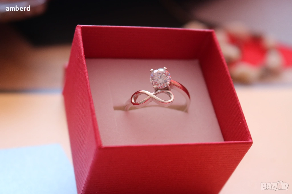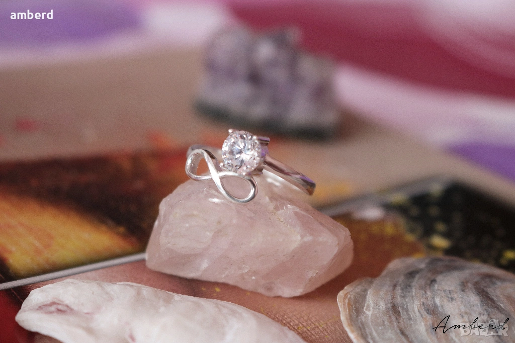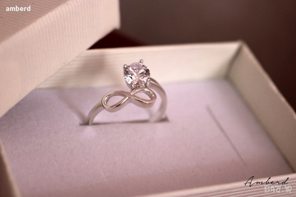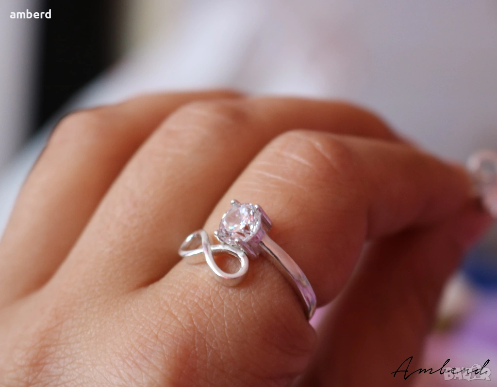 Много красив, стилен, елегантен и нежен дамски пръстен,изработен от сребро проба 925. Вътрешен диаметър 19мм.