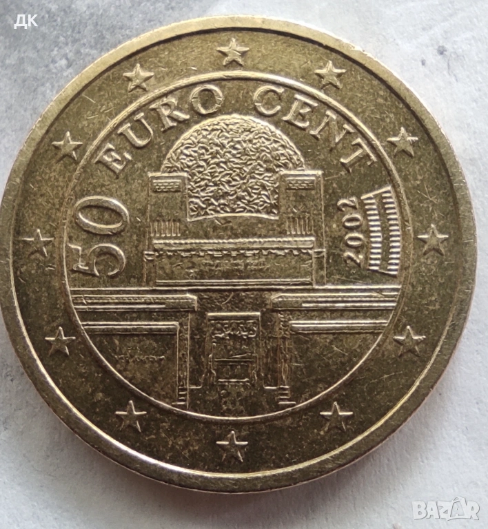 Австрийска монета от 50 евроцента, емитирана през 2002 г.