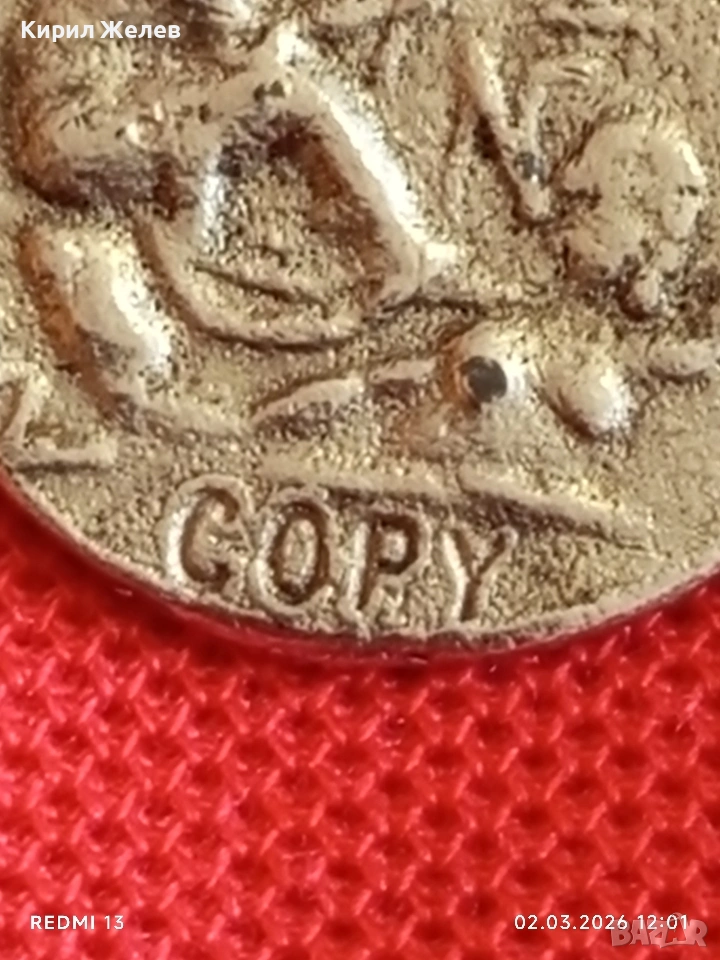 КОПИЕ РЕПЛИКА на рядка монета за КОЛЕКЦИОНЕРИ 37714