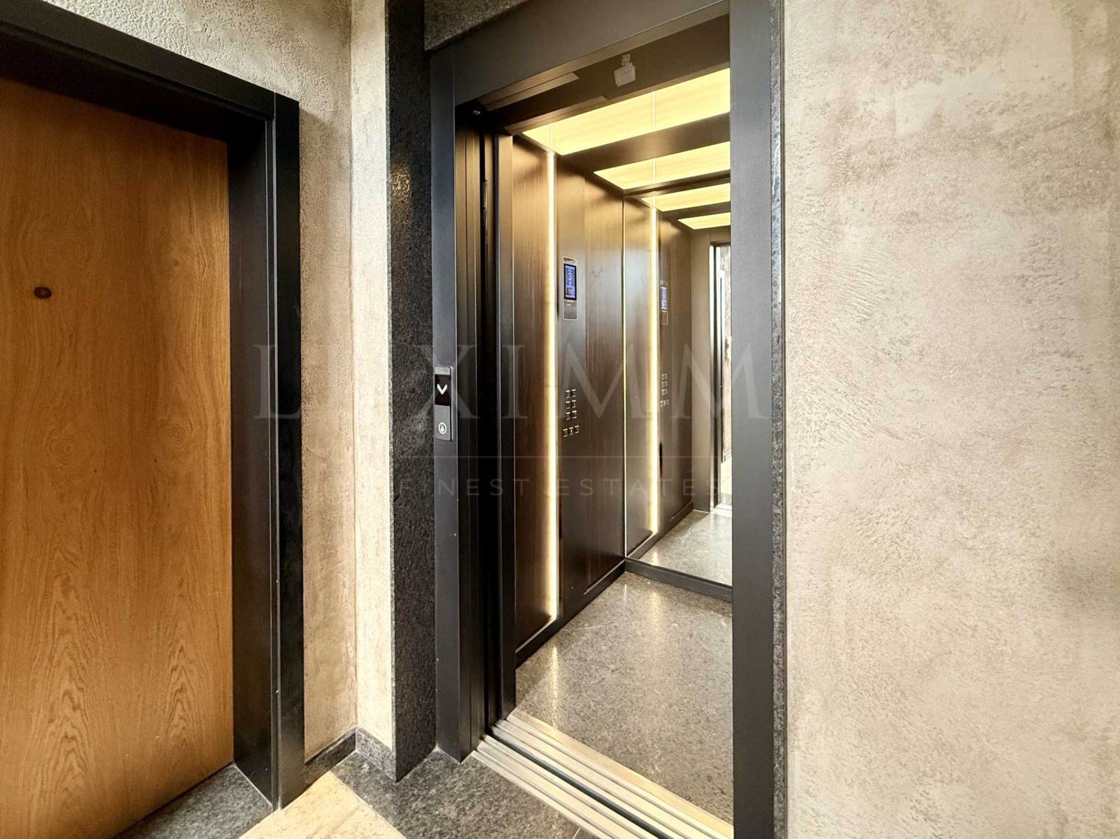 Представителни общи части лоби с рецепция, премиум настилки и осветление;