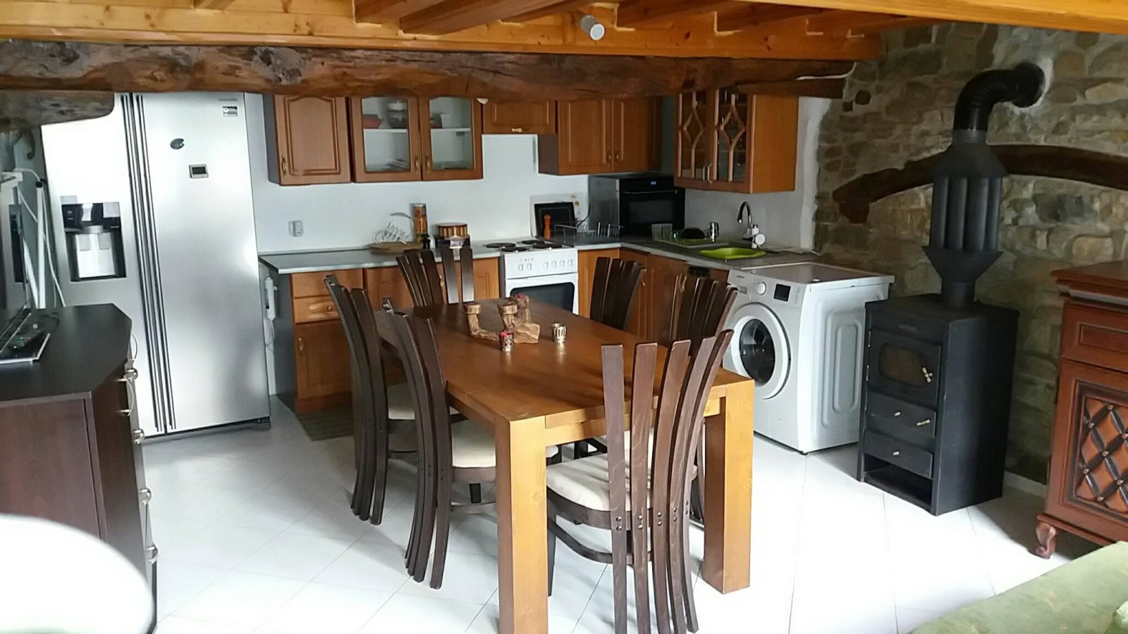 I-ви етаж уютна дневна с трапезария, спалня, баня с тоалетна. Инверторен климатик и камина на дърва в дневната.