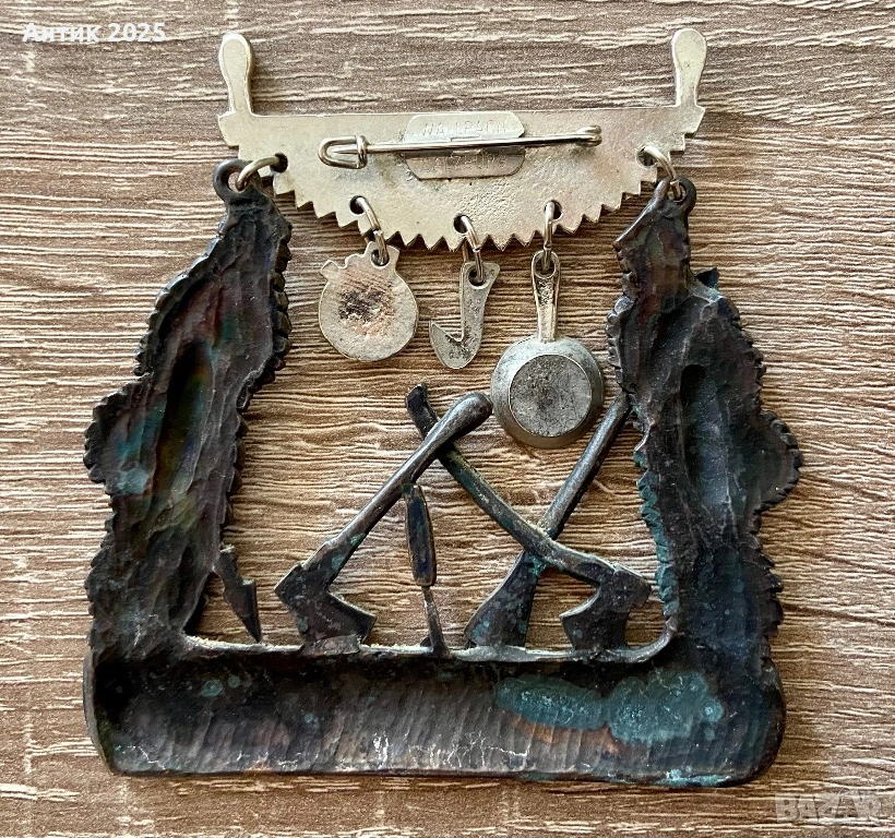 Значката е изработена от метал с ефектна патина в бронзов стил. Декорирана е с релефни елементи: смърчови клонки с шишарки, кръстосани брадви, туристически нож, както и висящи елементи във формата на тиган, кука и котле. В горната част е отбелязана годината „1978“, а в долната има надпис: