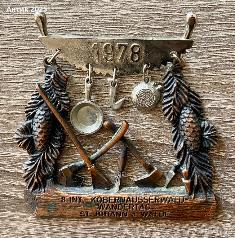 Оригинална колекционерска значка от 1978 г., издадена по повод 8-ия международен туристически ден (Wandertag) в региона Кобернаусервалд, гр. Санкт Йохан ам Валде, Австрия.