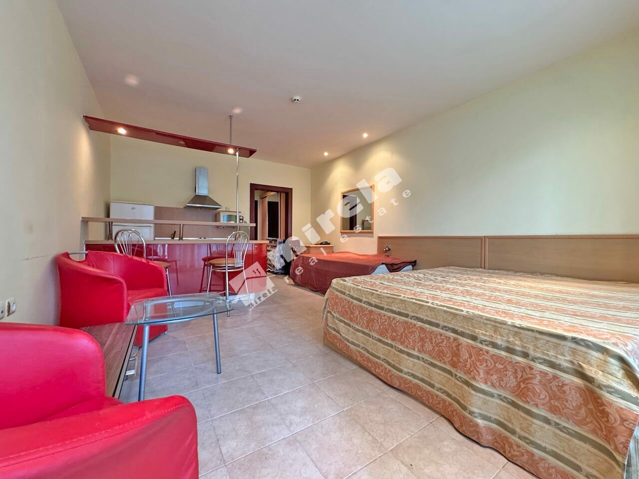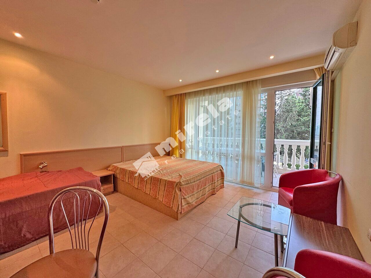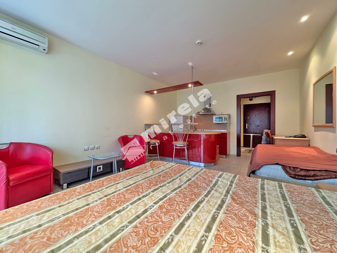 454398 Студио в затворен комплекс Планета в к.к. Слънчев бряг. Предлагаме за продажба просторен стилно обзаведен едностаен апартамент на първа линия в Слънчев бряг, на 50 м от морето, в луксозния петзвезден хотел 'Планета', с ниска такса поддръжка.