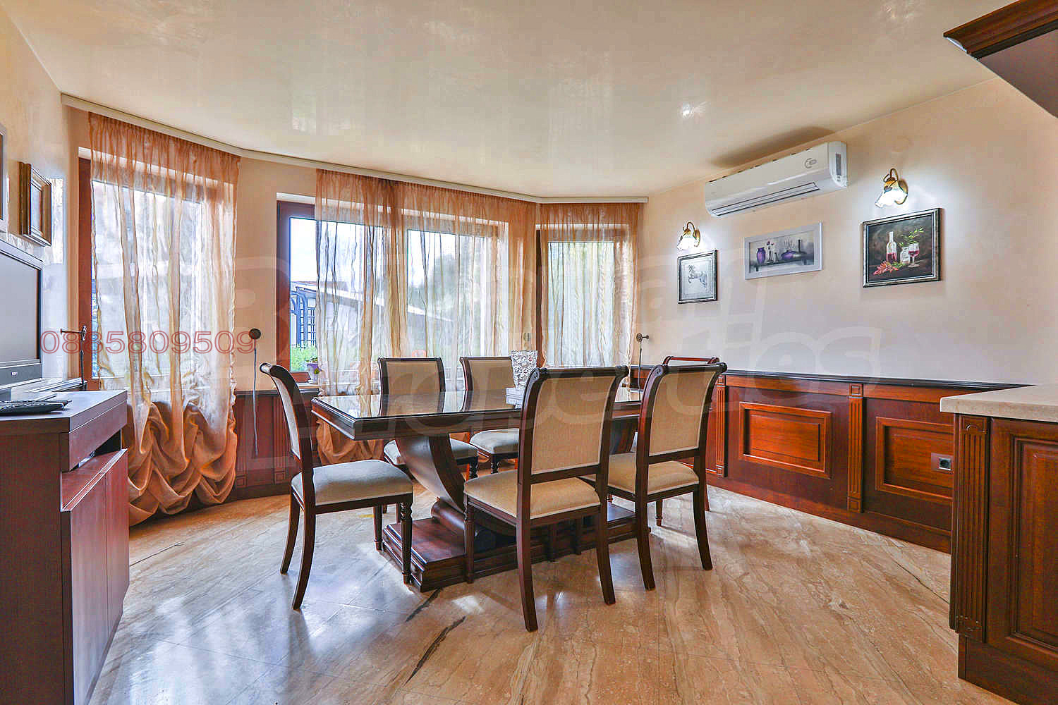 -Трапезария и кухня с подови настилки от италиански мрамор, обзавеждането на кухнята е от масив.