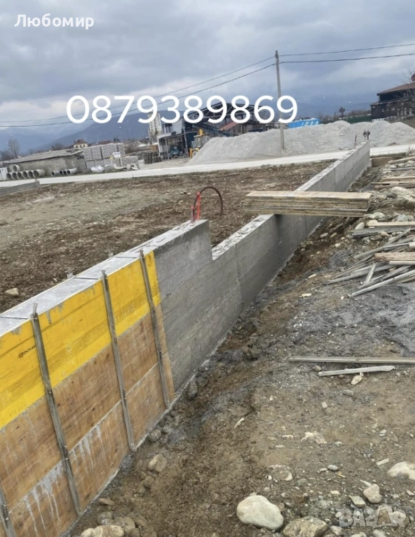 2.Може и частично, само бетонна основа и стена(Изкоп, Кофраж, Арматура и Бетон)