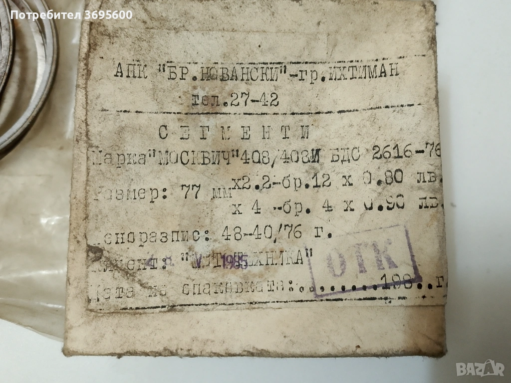 Москвич Moskvich 408 комплект сегменти за двигател, снимка 1 - Части - 53677808 Москвич Moskvich 408 комплект сегменти за двигател, снимка 2 - Части - 53677808 Москвич Moskvich 408 комплект сегменти за двигател, снимка 3 - Части - 53677808 1/3