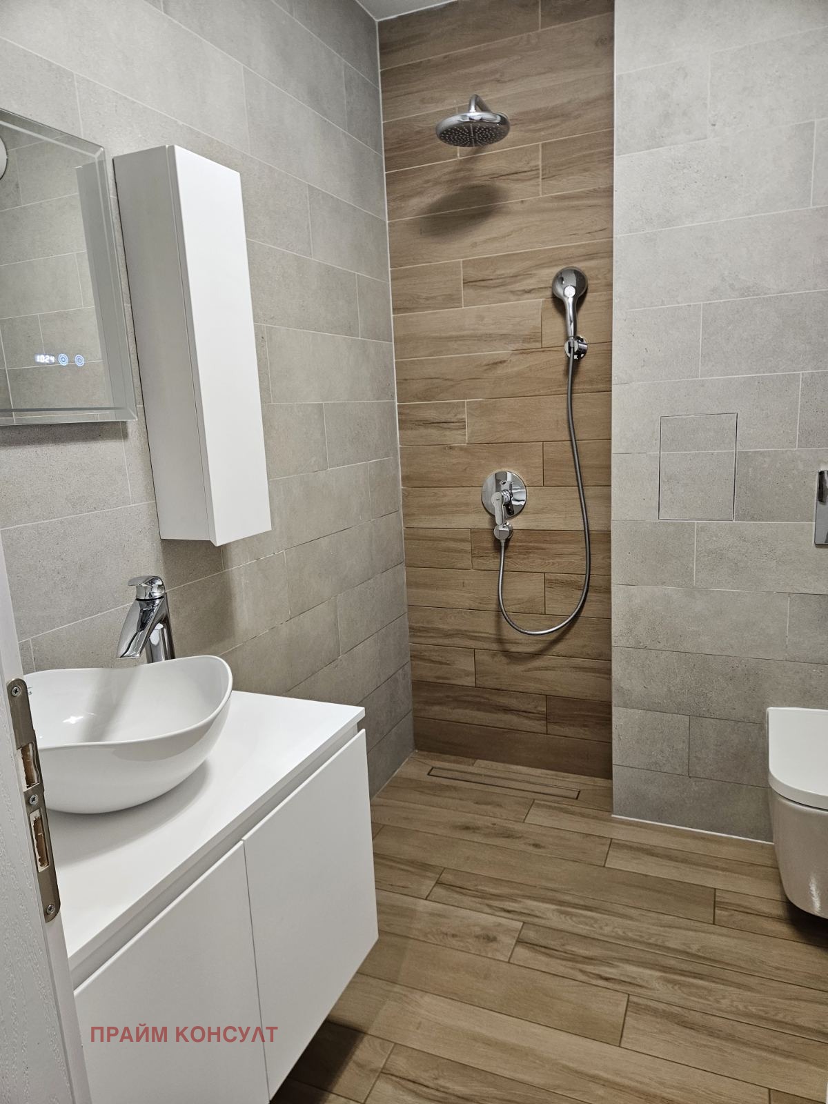Модерна баня с walk-in душ и висок клас санитария.
