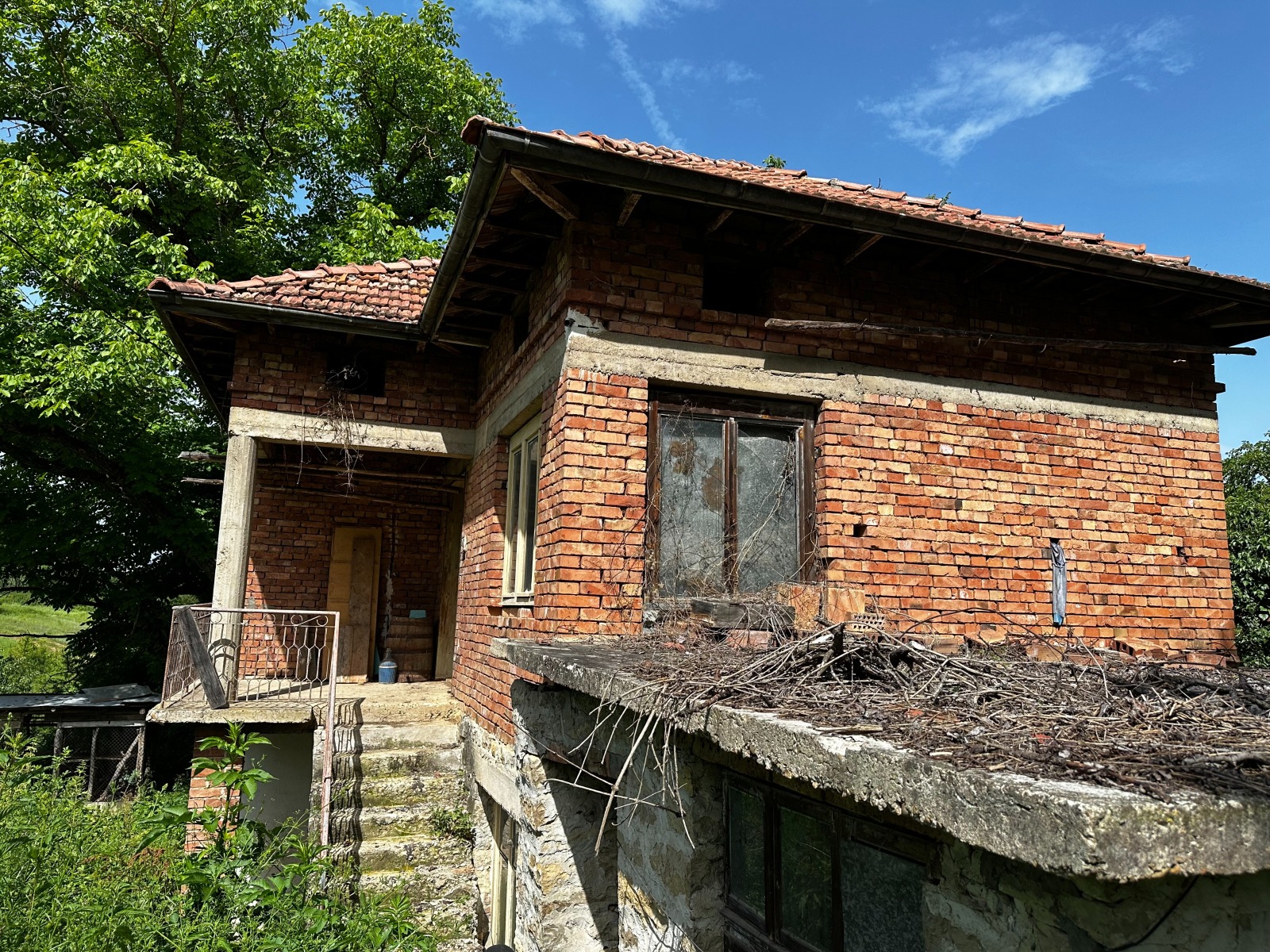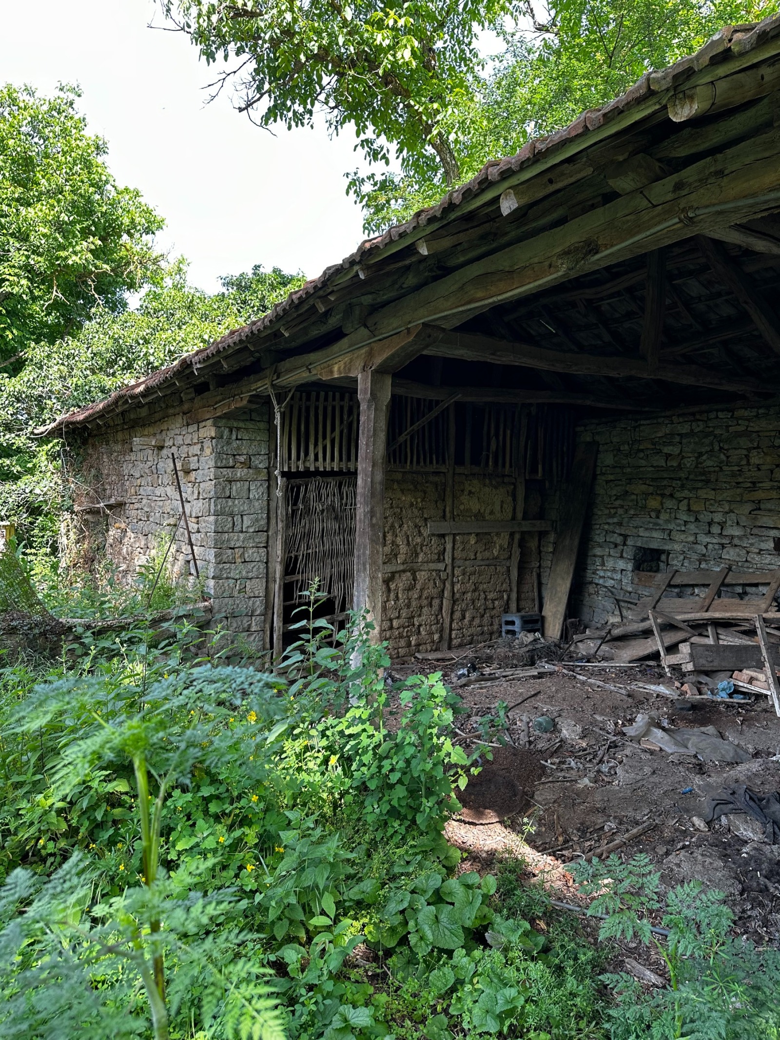 Къща се предлага с 1200 кв.м. двор, с добре запазена каменна плевня и допълнителна стопанска постройка.Външно стълбище води до тераса с панорамна гледка.