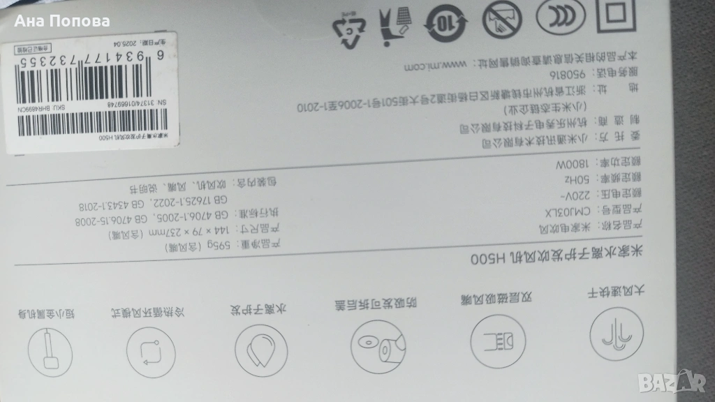 Сешоар Xiaomi Water Ionic Hair Dryer H500 → Обява 53678418