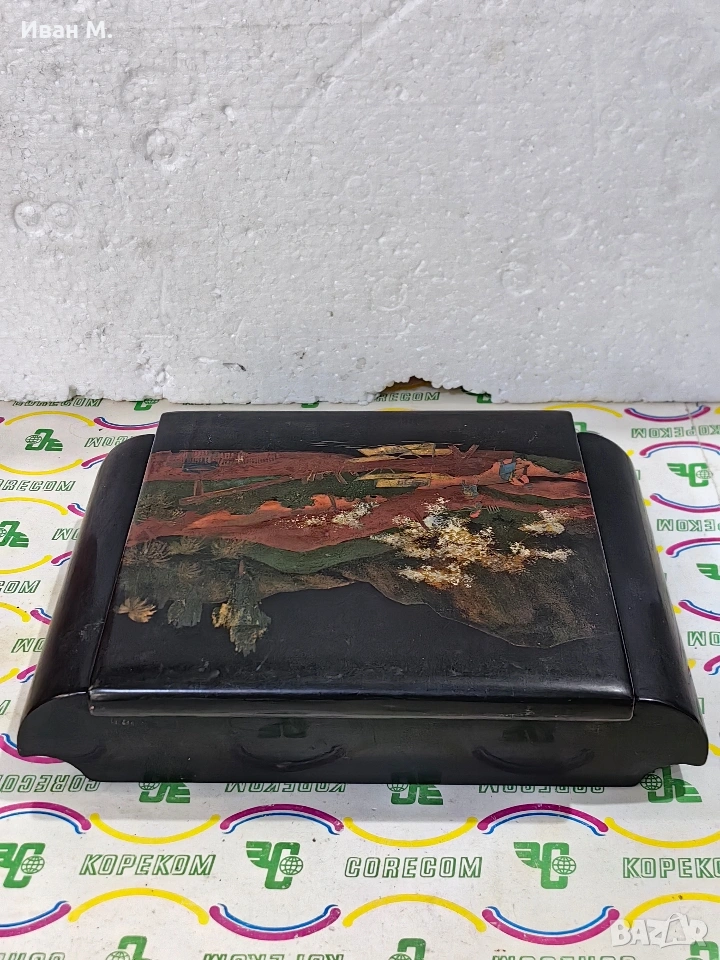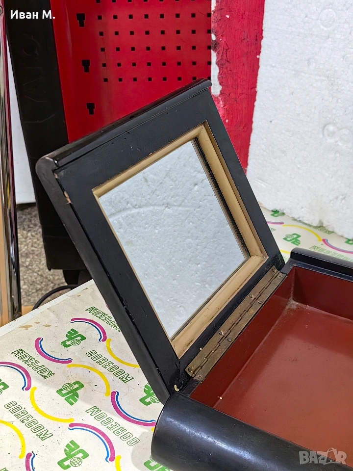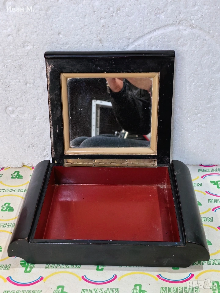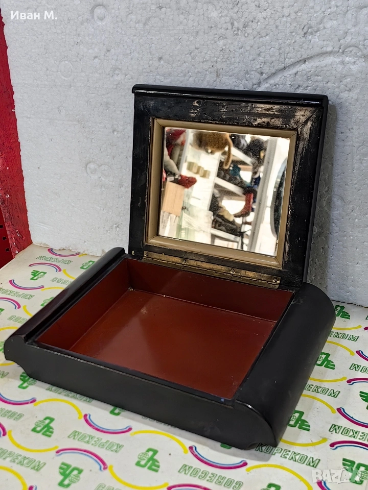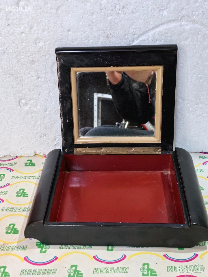 Рисувана стара дървена кутия с огледало за бижута → Обява 53678889