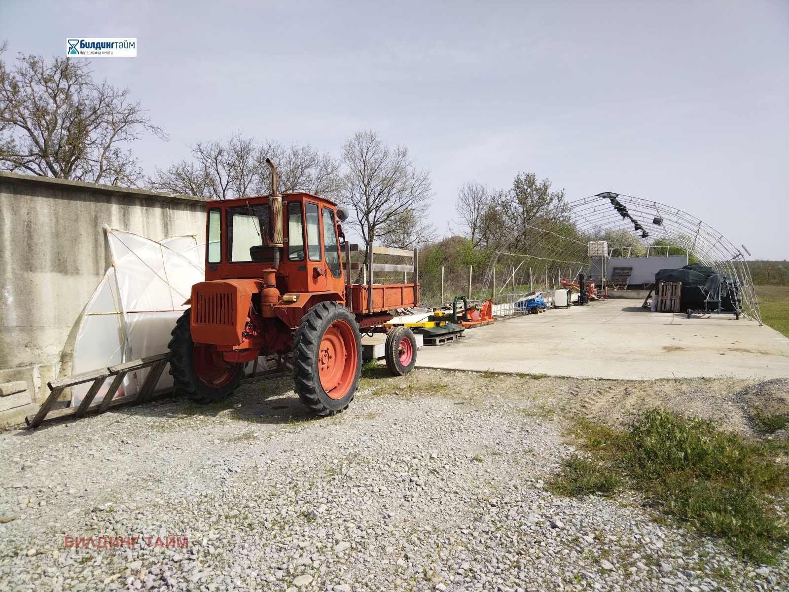 Изградена площадка от 300 кв.м. с гараж за трактора.