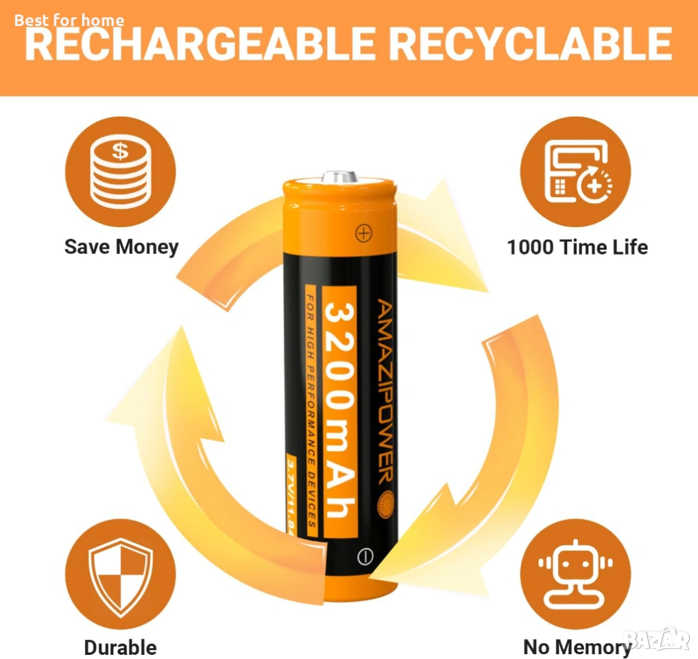 По-силна мощност и дълъг живот: Уникална технология с ниско разлагане до 1200 пъти и по-дълъг експлоатационен живот от обикновените батерии, поддържа стабилно изходно напрежение от 3,7 волта, прави устройствата да работят по-стабилно и да издържат по-дълго, чудесни батерии за замяна на устройства с висока мощност.