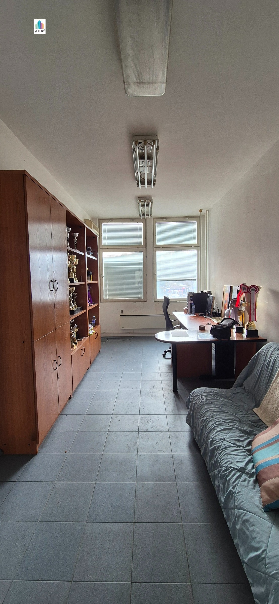 Офисът е разположен на 2ри етаж, в монолитна сграда, разполагаща с товарен асансьор. Имотът с чиста площ от 299,76 кв.м. и се състои от 7 помещения, санитарен възел и коридор, в добро структурно състояние, за ремонт и модернизация. Сградата разполага с напълно самостоятелен паркинг!