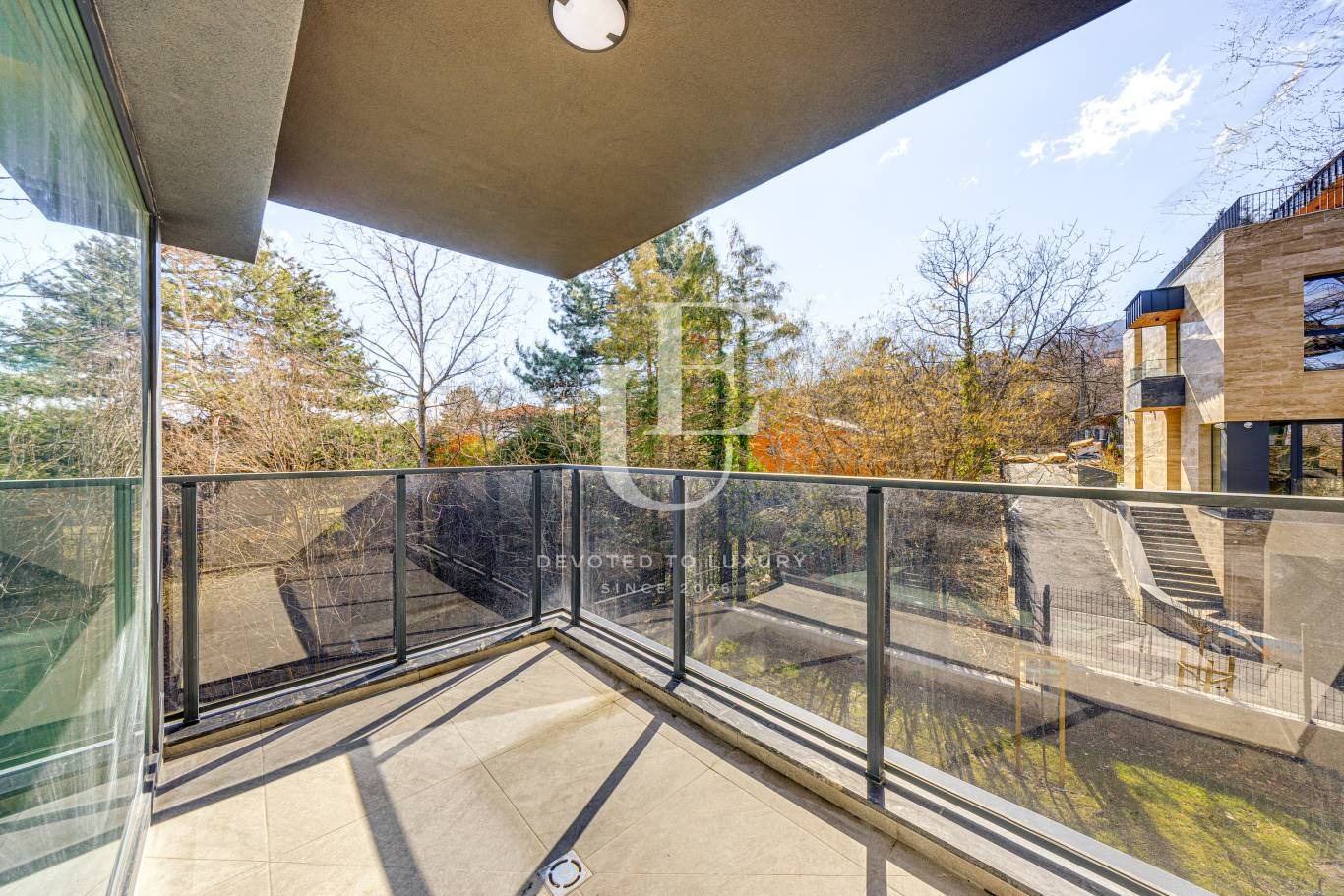Фасадата се отличава със съчетание на плоски и скатни покриви и висококачествени материали, които подчертават модерната визия на имота. Комплексът съчетава уединение, елегантност и удобство в полите на Витоша, като същевременно осигурява лесен достъп до града.
